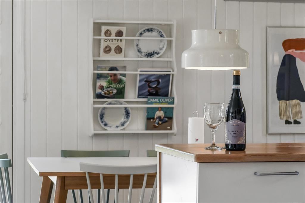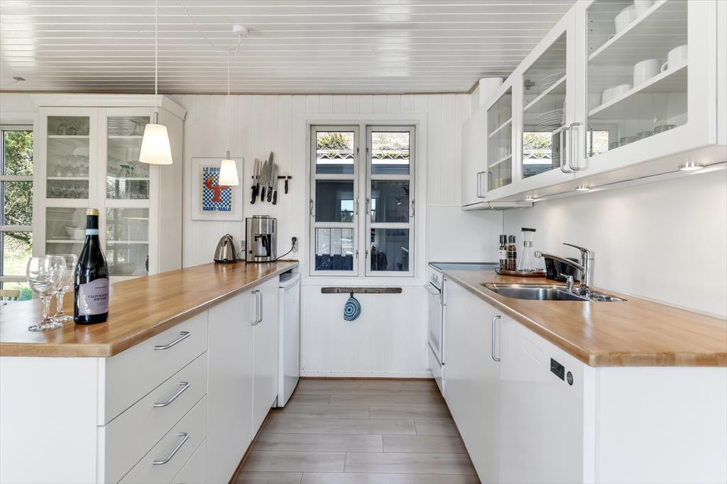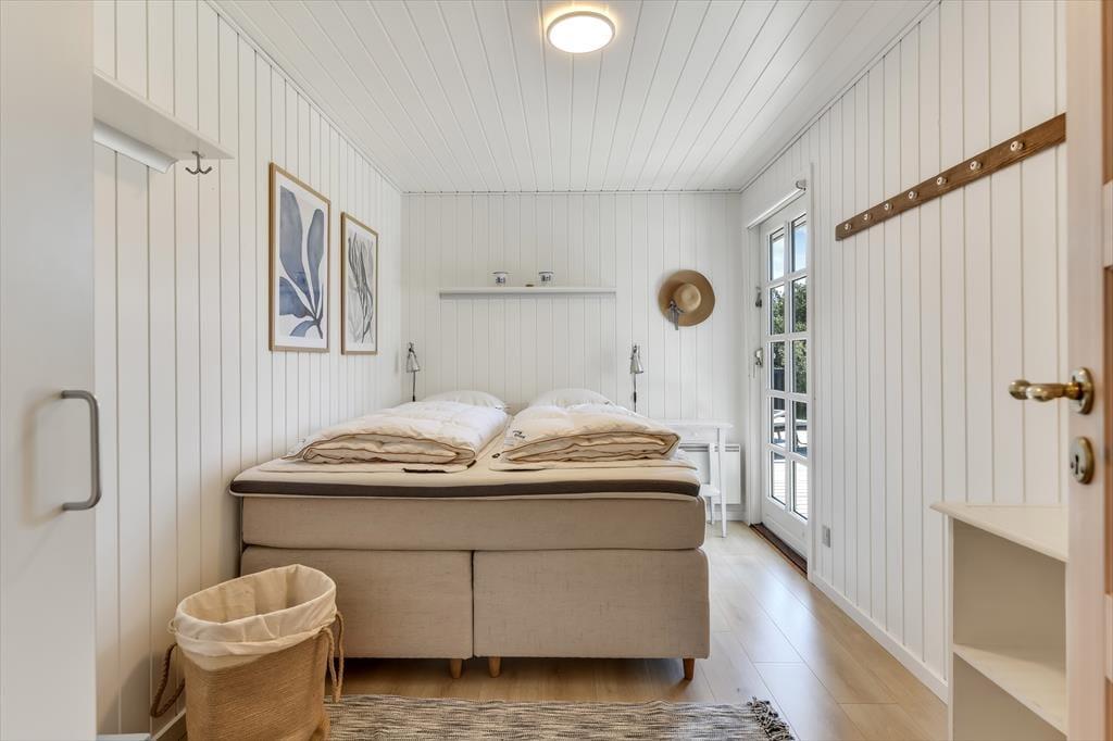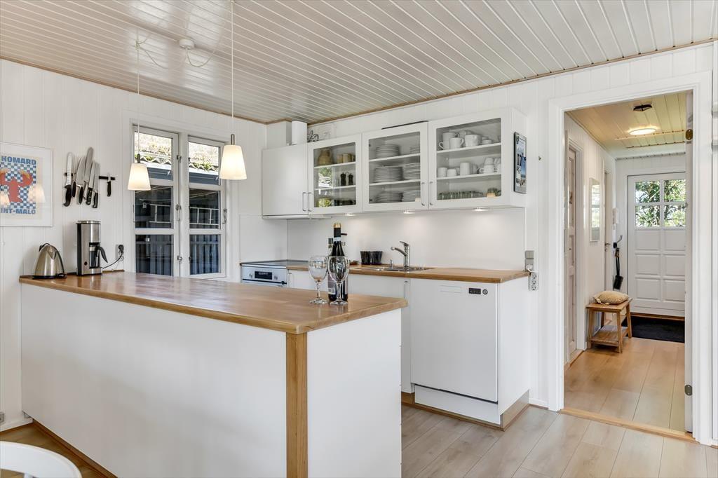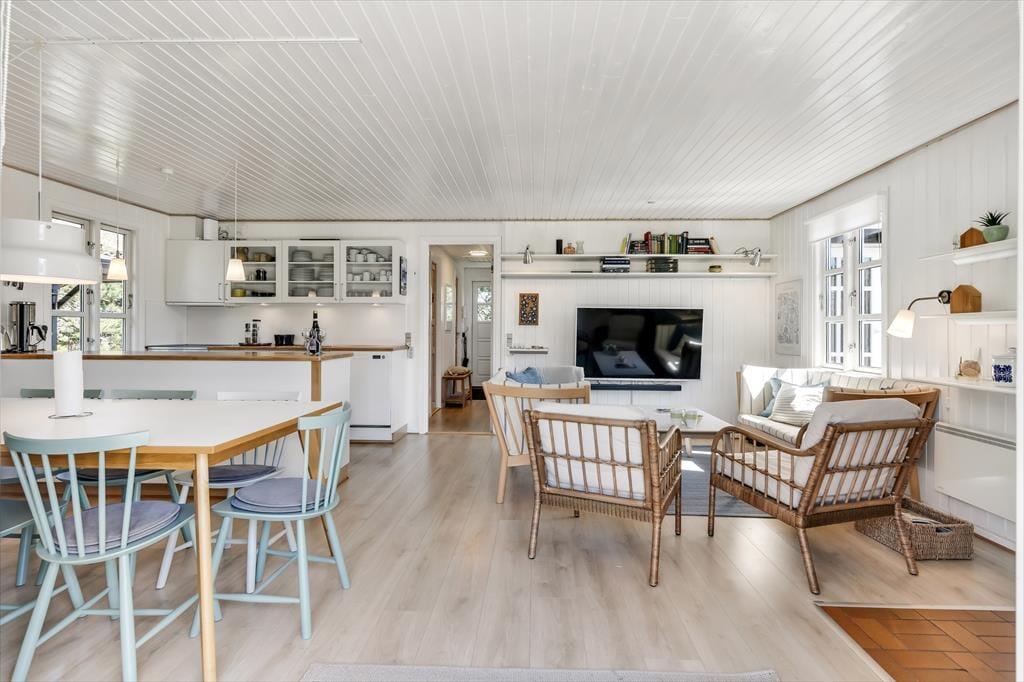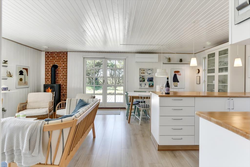 Dieses attraktive Urlaubsdomizil ist der Inbegriff von Frieden und Idylle. Mit seinem Grasdach, der schwarz gestrichenen Holzfassade und den weißen Fensterrahmen fügt es sich wunderschön in die herrliche Natur ringsum ein. Im Hausinneren lockt eine helle und einladende Wohnatmosphäre. Die Einrichtung untermalt dabei sehr schön das gemütliche Beisammensein im Familien- oder Freundeskreis. Der Wohnraum beinhaltet einen Esstisch, eine Sofagruppe und einen Kaminofen, der das gemütliche, warme Ambiente abrundet. Die doppelseitige Küche ist offen mit dem Wohnraum verbunden. Daher bleiben Sie selbst während der Zubereitung der Mahlzeiten wunderbar im Familiengeschehen. Die Schlafplätze verteilen sich auf insgesamt drei Schlafzimmer, von denen eines mit einem direkten Zugang zur Terrasse verwöhnt - ein ganz besonderer Luxus, da Sie direkt aus Ihrem Bett hinaus in die wunderschöne Morgensonne treten können. Zwei Badezimmer mit je einer Dusche sind ebenfalls im Haus untergebracht.
