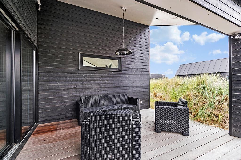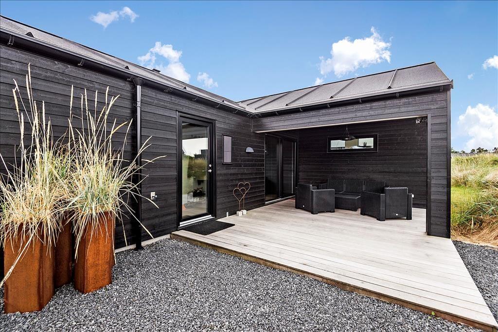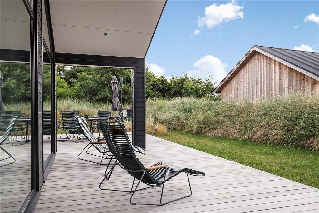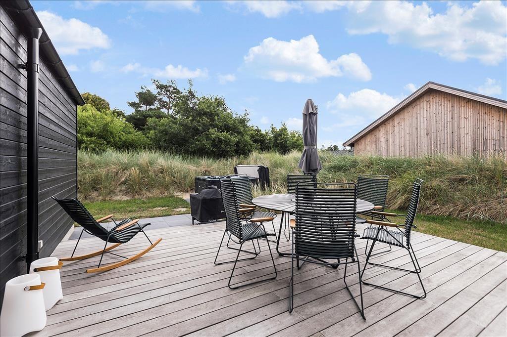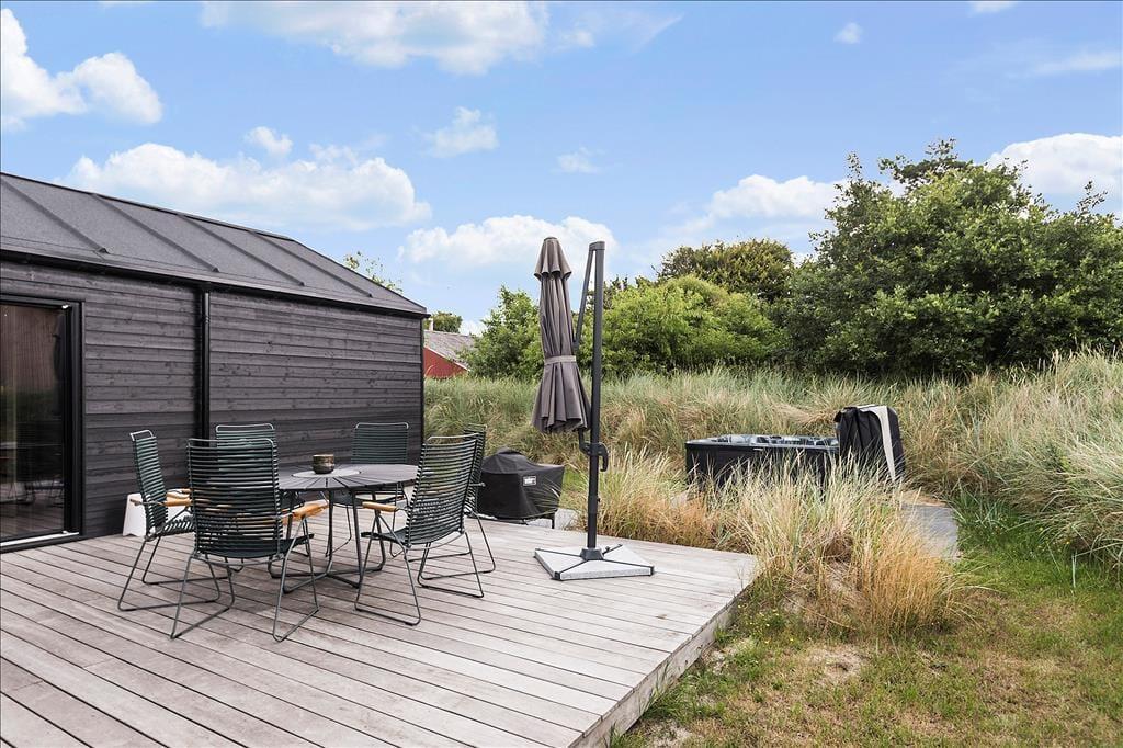 Sobald die Sommersonne über der Westküste Jütlands lacht, wird es Sie unwiderstehlich hinaus ins Freie ziehen. Hier können Sie wunderbar gemeinsam grillen, ausgedehnte Sonnenbäder genießen und es sich auf der attraktiven, teilweise überdachten Terrasse, die sich südlich und westlich des Hauses erstreckt, so richtig gemütlich machen. Vor dem Haus befinden sich gute Parkmöglichkeiten. Auf dem Grundstück lockt zudem eine kleinere Grasfläche, auf der Sie mit Ihren Kindern unterhaltsame Gartenspiele spielen können.