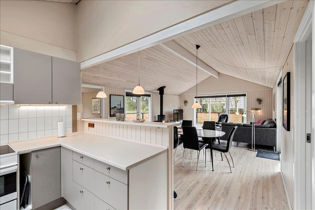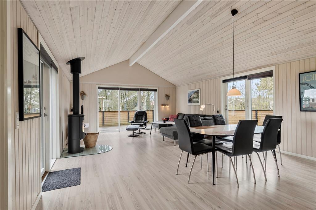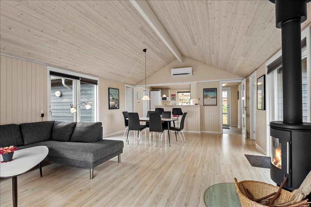 Die 85 m² umfassende Wohnfläche des attraktiven Ferienhauses bietet Ihnen alles, was das Urlaubsleben komfortabel macht. Die Sauna ist wenig überraschend im Badezimmer platziert. Der Wohnraum verwöhnt Sie mit einem Kaminofen und lädt zu gemütlichen Abenden im Warmen mit unterhaltsamen Gesellschaftsspielen oder einem wahren Filmmarathon ein. Die großen Fenster des Wohnraumes gewähren einen herrlichen Tageslichteinfall und Dank der offenen Verbindung zur Küche bleiben Sie selbst bei der Zubereitung der Urlaubsmahlzeiten wunderbar im Familiengeschehen des Wohnraumes integriert. Ein bedeutender Teil der Urlaubserholung ist selbstverständlich auch der gute Schlaf. In den drei Schlafräumen dieses Urlaubsdomizils können Sie sich weit ab des Alltags in aller Ruhe so richtig gut ausschlafen.