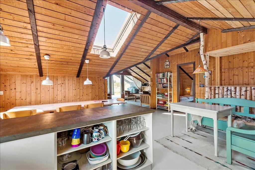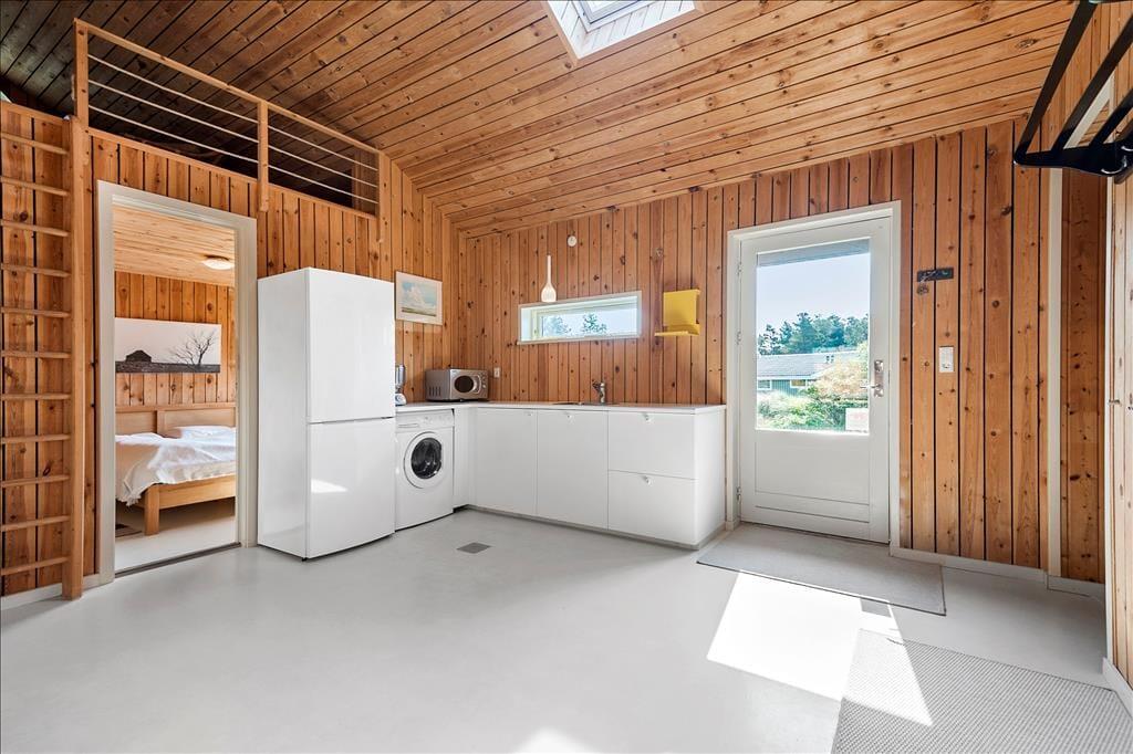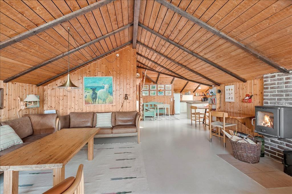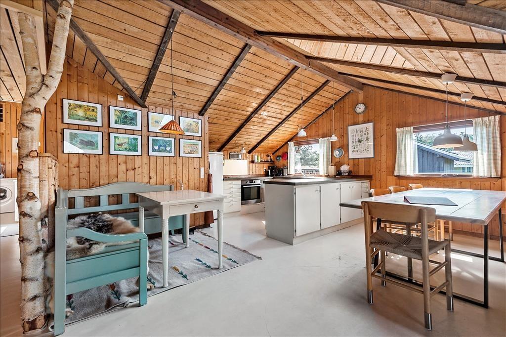 Wenn Sie klassischen Ferienhauscharme mit holzverkleideten Wänden, zahlreichen gemütlichen Eckchen und einer warmen, gemütlichen Wohnatmosphäre zu schätzen wissen, ist dieses Exemplar eine ganz hervorragende Wahl. Der Aufenthaltsraum bietet Ihnen ausreichend Platz um sich in geselliger Runde in der Sofaecke nah am Kaminofen zu versammeln oder ein köstliches Essen rund um den Esstisch zu genießen. In der offenen Küche können Sie zudem sehr schön mit mehreren Personen gemeinsam die Mahlzeiten zubereiten. Die Schlafplätze verteilen sich auf vier Schlafzimmer. Hinzu gesellen sich Matratzen auf dem Schlafboden, der sich sicherlich als Kuschel- und Spielbereich bei den Jüngsten großer Beliebtheit erfreuen wird. Die Wohnfläche umfasst darüber hinaus auch ein Badezimmer, ein Gäste-WC und einen geräumigen Eingangsbereich, in dem Ihnen eine Waschmaschine und ein zusätzlicher Kühlschrank zur Verfügung stehen.