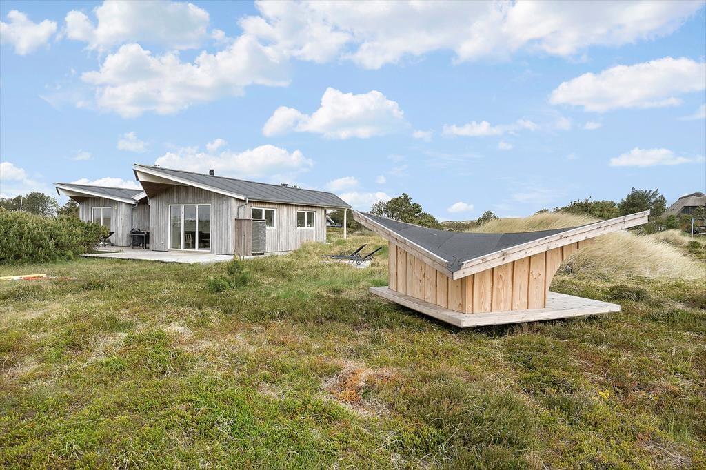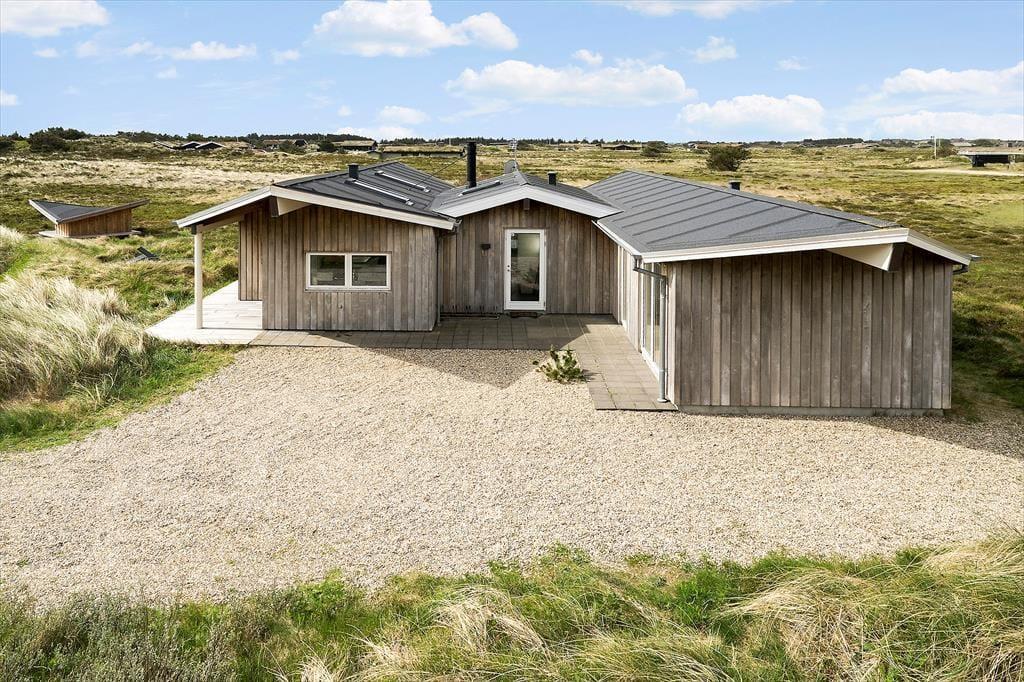 An der Adresse dieses Ferienhauses treffen Sie auf ein wohlproportioniertes Mietobjekt, das mit seinem modernen Look, der interessanten Architektur und der rustikalen Fassade aus unbehandeltem Eichenholz zu beeindrucken weiß. Das unbehandelte Eichenholz bildet eine natürliche Patina, die dafür sorgt, dass sich das Haus ganz natürlich und harmonisch in die reizvolle Natur Westjütlands einfügt. Dank der guten Raumaufteilung und der großen Anzahl an Quadratmetern können in diesem Ferienhaus problemlos bis zu sechs übernachtende Urlauber entspannte und erholsame Urlaubstage verbringen. Die Räume sind allesamt ausgesprochen hell und einladend gestaltet und verzücken mit diversen schönen Details. In den drei ansprechenden Schlafzimmern steht Ihnen jeweils ein gutes Doppelbett zur Verfügung. Eines der beiden vorhandenen Badezimmer verwöhnt zudem mit einer Sauna, in der Sie sich nach einem langen, erlebnisreichen Urlaubstag in vollen Zügen entspannen und erholen können. Der Wohnraum wird sicherlich im Nu zum beliebten Sammelpunkt aller Mitreisenden avancieren. Er überzeugt mit einer stilreinen Möblierung, einem behaglich knisternden Kaminofen und einer offen intergierten Küche mit angenehm viel Arbeitsfläche. Zu den allerschönsten Dingen gehört in diesem Mietobjekt allerdings zweifelsohne die Aussicht. Durch die Fenster blicken Sie auf die offene, weite Landschaft - ein Anblick, der Ihren Urlaub unvergesslich machen wird.