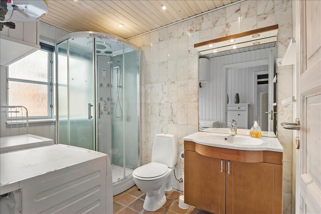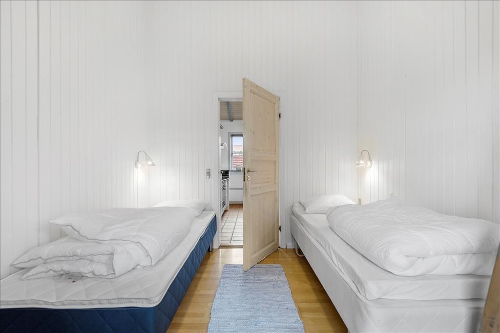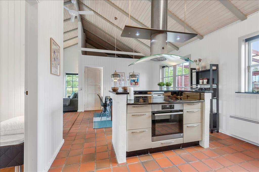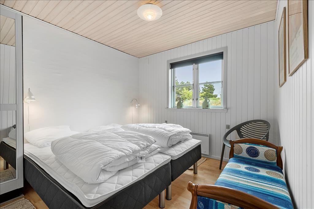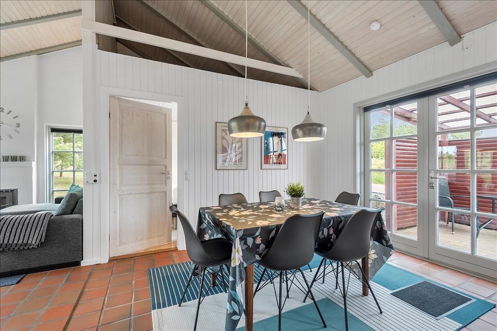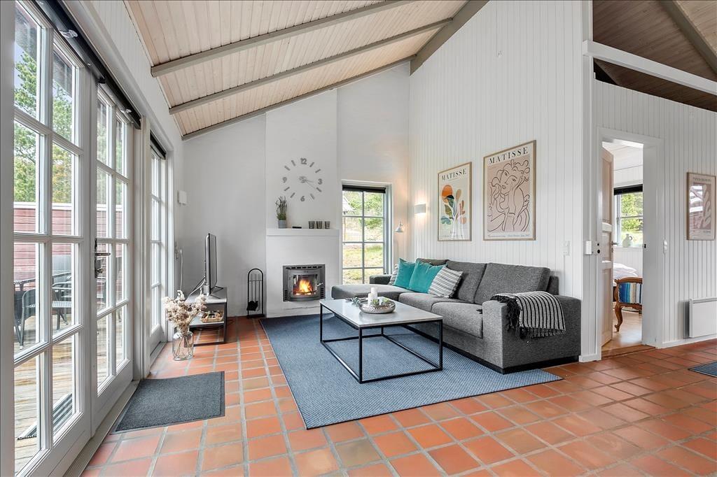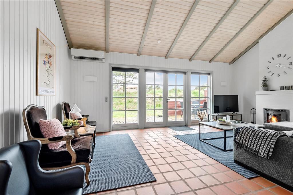 Bei diesem Ferienhaus handelt es sich um ein 96 m² großes Reihenendhaus, das 1985 erbaut wurde. In der Zwischenzeit wurde das Haus modernisiert und renoviert, sodass es sich hell und freundlich und mit schöner Einrichtung präsentiert. Zentraler Mittelpunkt ist das große Wohnzimmer, das mit einer Sofaecke, einem Essbereich und einer gut sortierten offenen Küche ausgestattet ist. Wenn es draußen kühl ist, können Sie sowohl den Holzofen als auch die Wärmepumpe nutzen, und wenn die Sommersonne scheint, können Sie die Flügeltüren weit öffnen, für einen freien Zugang zur Terrasse. Ein Badezimmer ist ebenfalls Teil des Hauses sowie drei Schlafzimmer, von denen zwei mit Doppelbetten und das dritte mit zwei Einzelbetten versehen sind.