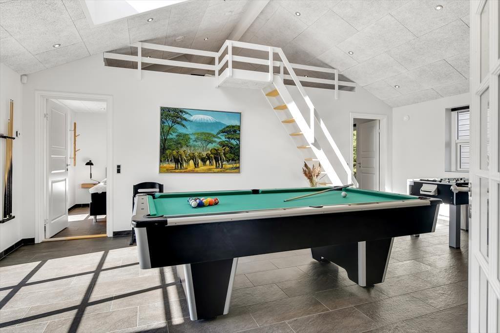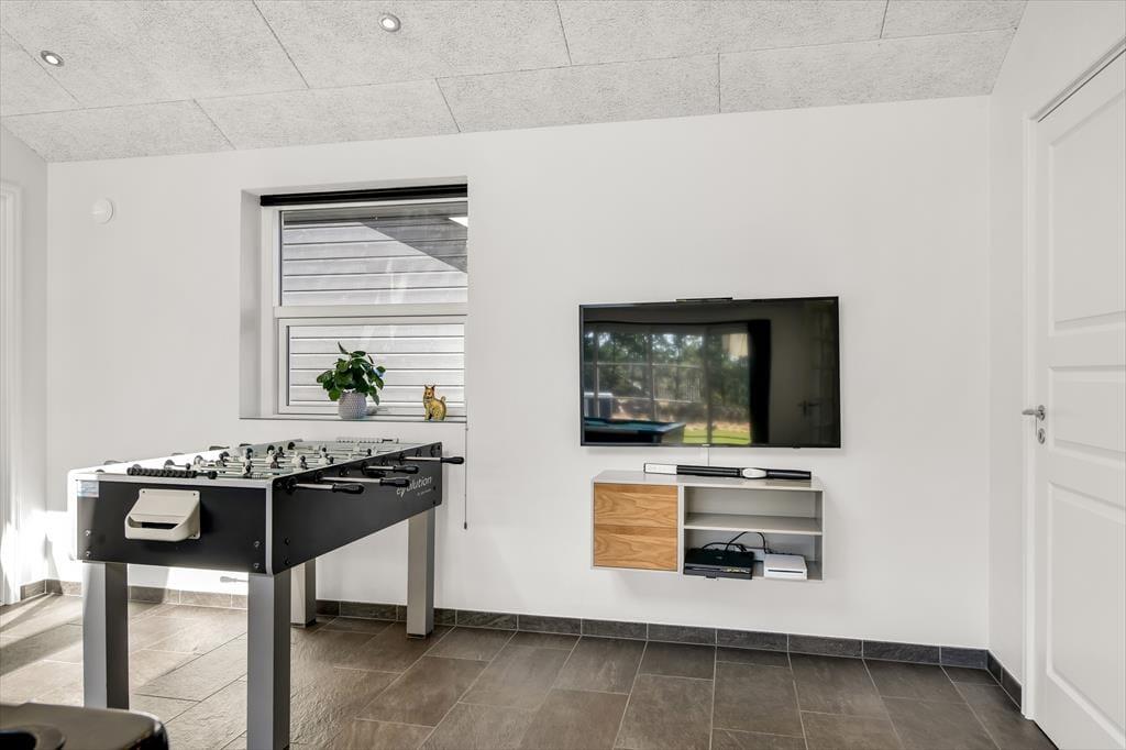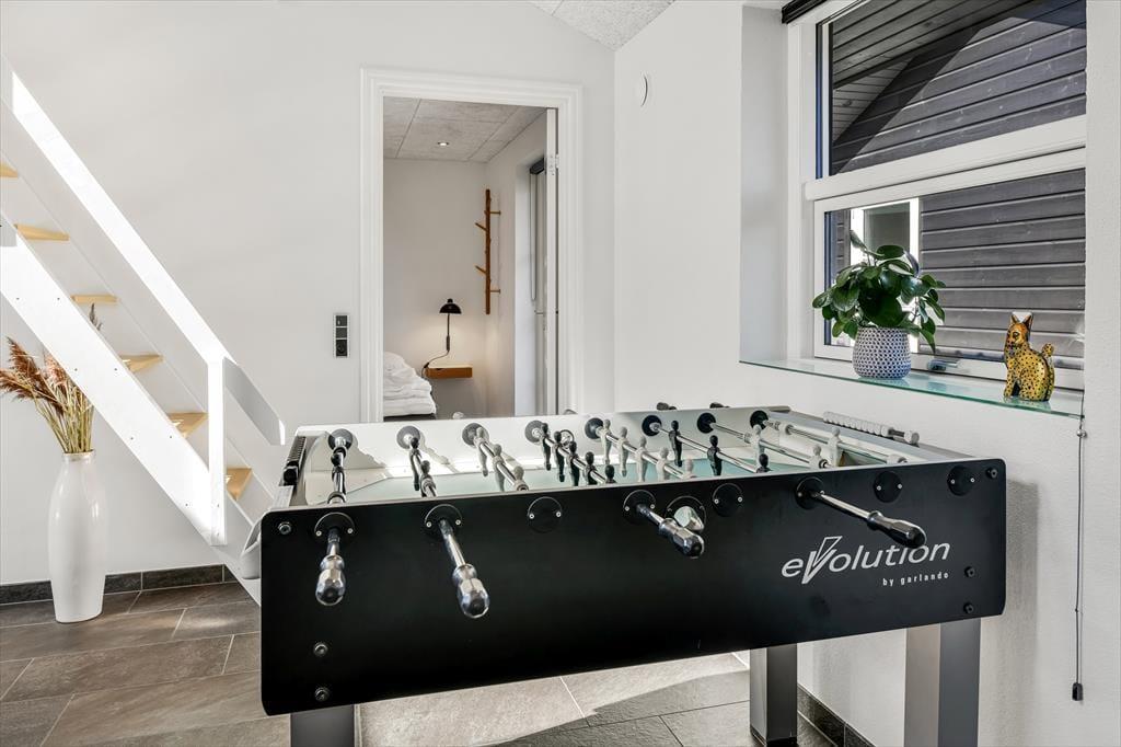 Dieses moderne Ferienhaus befindet sich in einem kleinen geschotterten Stichweg in zentraler Lage in Blåvand. Zu Fuß erreichen Sie binnen kurzer Zeit den fantastischen Sandstrand des beliebten Badeortes. Das Haus bietet Ihnen mit seiner Wellnessausstattung und dem Aktivitätsraum allerdings auch gute Gründe, einen Großteil Ihrer Urlaubszeit in und am Haus zu verbringen.