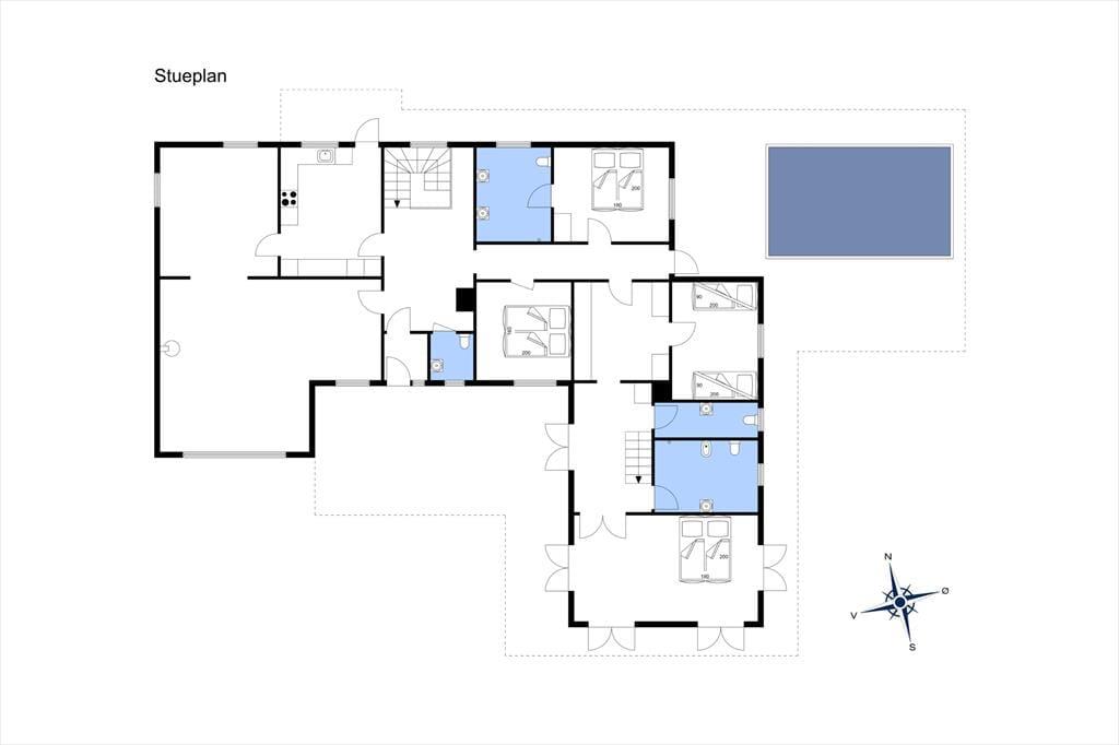 Dieses große Qualitäts-Sommerhaus in Blåvand bietet eine Fülle von wunderbaren Details. Im Inneren werden Sie mit einem Whirlpool, einer Sauna und einem stimmungsvollen Wohnbereich verwöhnt, und draußen können Sie das Leben im Pool und auf den sonnigen Terrassen genießen.