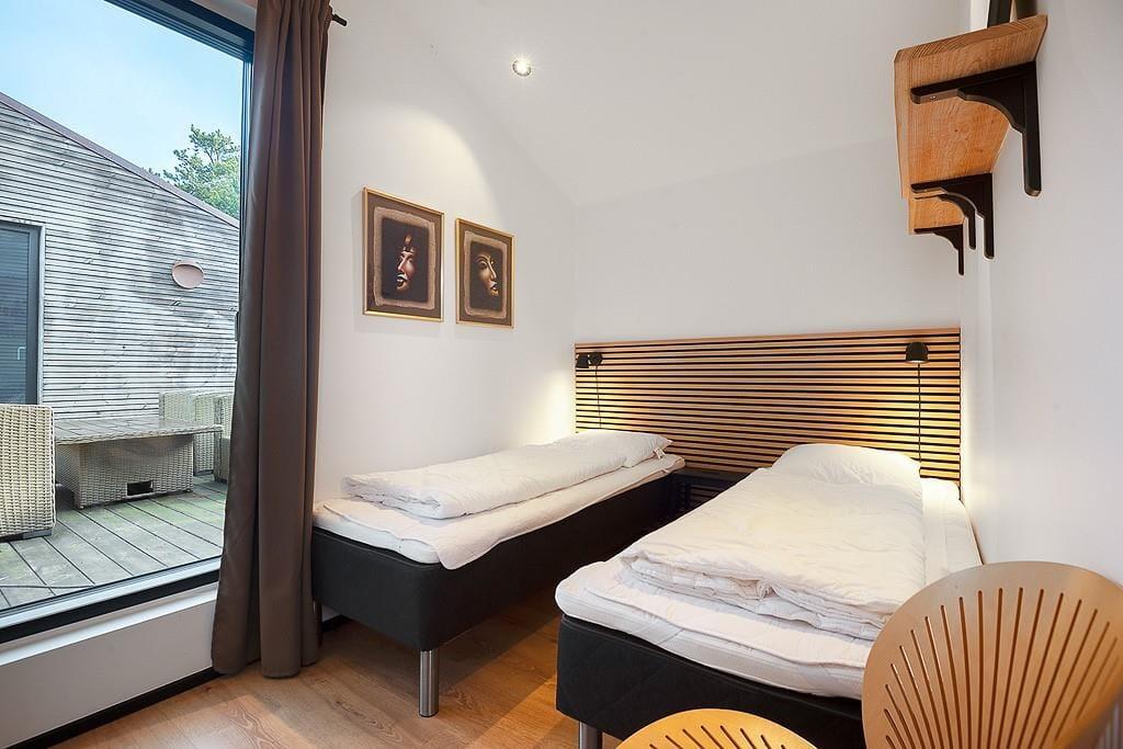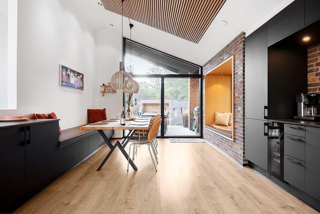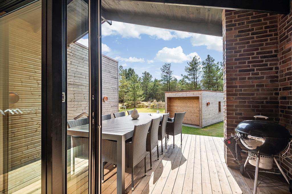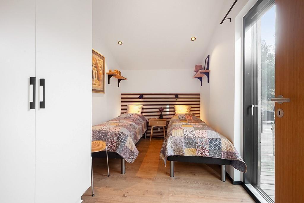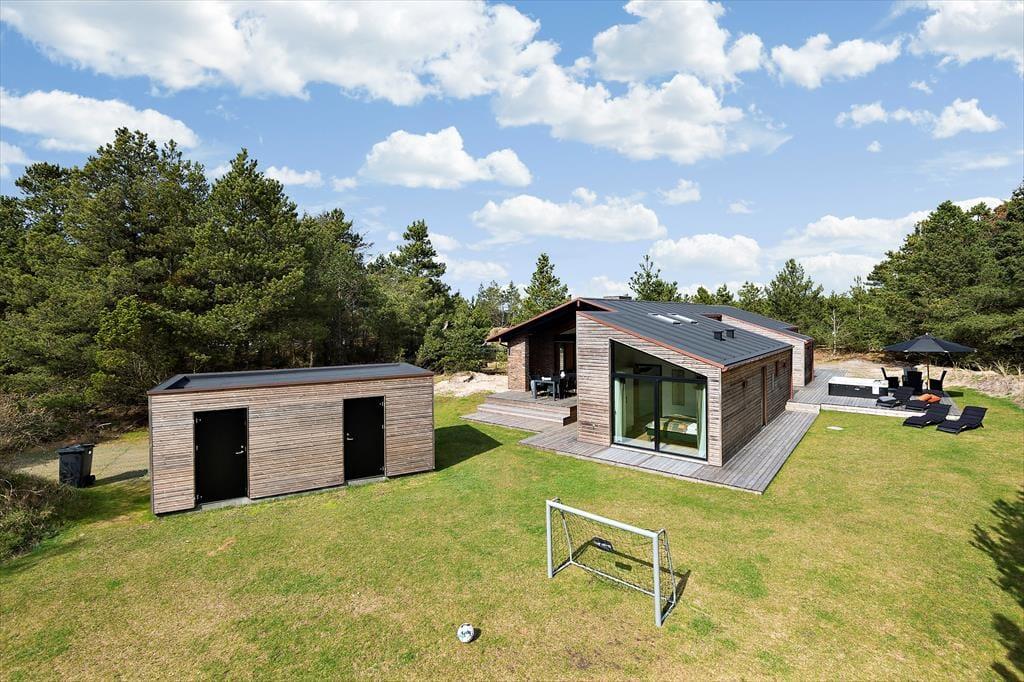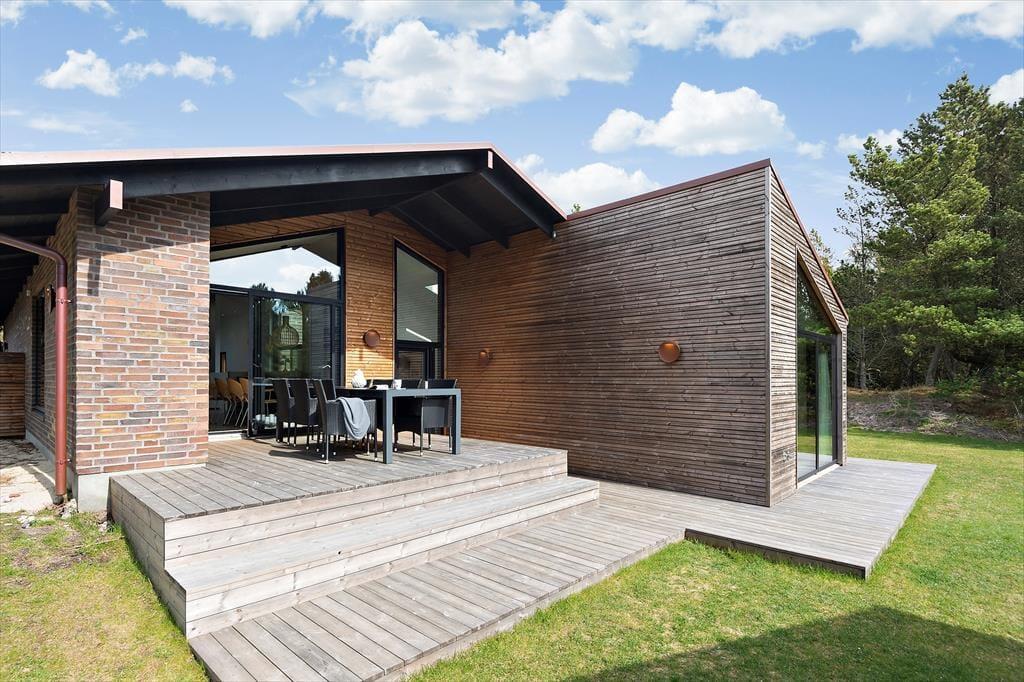Mit 150 m² Wohnfläche und einer durchdachten Raumaufteilung gibt es reichlich Platz, sodass sich bis zu acht Personen auf Sandvej 14 versammeln können. Das Ferienhaus präsentiert sich sowohl exklusiv als auch einladend mit hellen, breiten Dielenböden, offenem Giebel bis zum First, großen Fensterflächen und einer Einrichtung in harmonischen Farbtönen. Die vier schönen Schlafzimmer und zwei stilvollen Badezimmer sind auf zwei separate Schlafbereiche verteilt – ideal für zwei Familien, die sowohl Gemeinschaft als auch Privatsphäre wünschen. Ein praktischer Abstellraum mit Waschmaschine und Trockner macht den Urlaub besonders komfortabel, während das natürliche Herzstück des Hauses der große Wohnbereich ist, in dem die hochwertige offene Küche nahtlos mit dem eleganten Wohnzimmer verschmilzt. Hier könnt ihr euch am Esstisch versammeln, vor dem großen Flachbildfernseher und dem Einbaukamin entspannen oder eine ruhige Auszeit auf der gemütlichen Liegenische am Fenster mit Blick auf das naturschöne Grundstück genießen.