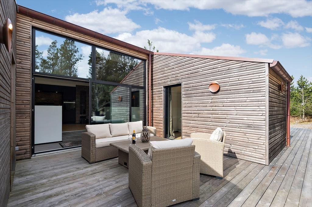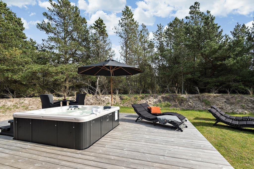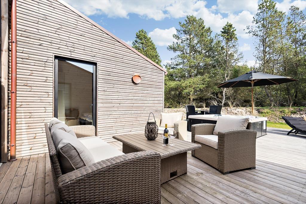 Das 1500 m² große Naturgrundstück bietet eine wunderbare Kulisse für das Urlaubsleben mit viel Platz für Spiel, Entspannung und Wellness. Eine einladende Terrassenlandschaft zieht sich rund um das Haus und bietet mehrere herrliche Aufenthaltsplätze – von sonnigen Ecken bis hin zu überdachten Bereichen, in denen ihr laue Sommerabende geschützt genießen könnt. Der Außenspa steht für entspannende Stunden unter freiem Himmel bereit, ganz gleich, ob die Sonne scheint oder die Sterne am Nachthimmel funkeln. Auf der Südostseite befindet sich zudem eine Außendusche, und auf der Rasenfläche können Kinder und Erwachsene gleichermaßen bei Ball- und Gartenspielen aktiv werden. Hier ist die Natur ganz nah, und sowohl Hasen als auch Rehe lassen sich häufig auf dem Grundstück blicken.