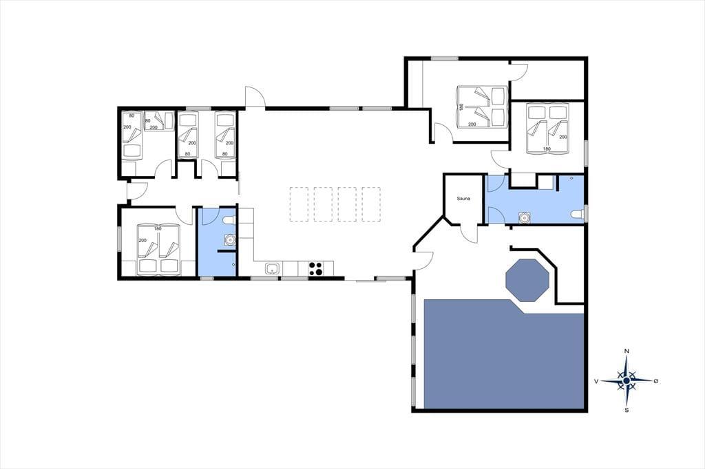 Während deines Aufenthalts in diesem großen, schönen Ferienhaus in Blåvand, wirst du traumhaft entspannte Stunden im Swimmingpool, im Wohnraum und auf der Sonnenterrasse genießen. Das Haus begeistert mit einer Fülle toller Details, die deine Urlaubstage zu etwas ganz Besonderem machen. Dank der guten Raumaufteilung und der großzügig bemessenen Wohnfläche verbringst du in diesem Haus stimmungsvolle Urlaubstage mit der gesamten Familie oder mit deinen besten Freunden.