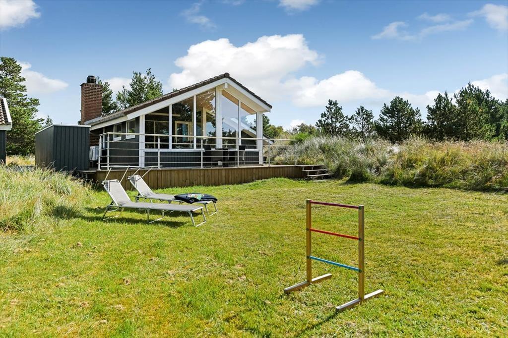 Unabhängig von Wetter und Jahreszeit wirst du in diesem gemütlichen Ferienhaus am Weg Søren Gades Mark in Blåvand zu jeder Zeit einen schönen Aufenthaltsplatz finden. An kühlen Tagen erfreust du dich am Kaminofenfeuer im Wohnraum und an der im Badezimmer platzierten Sauna. An sommerlichen Tagen wird es dich hingegen unwiderstehlich hinaus auf die sonnenverwöhnte Holzterrasse des Naturgrundstücks ziehen.