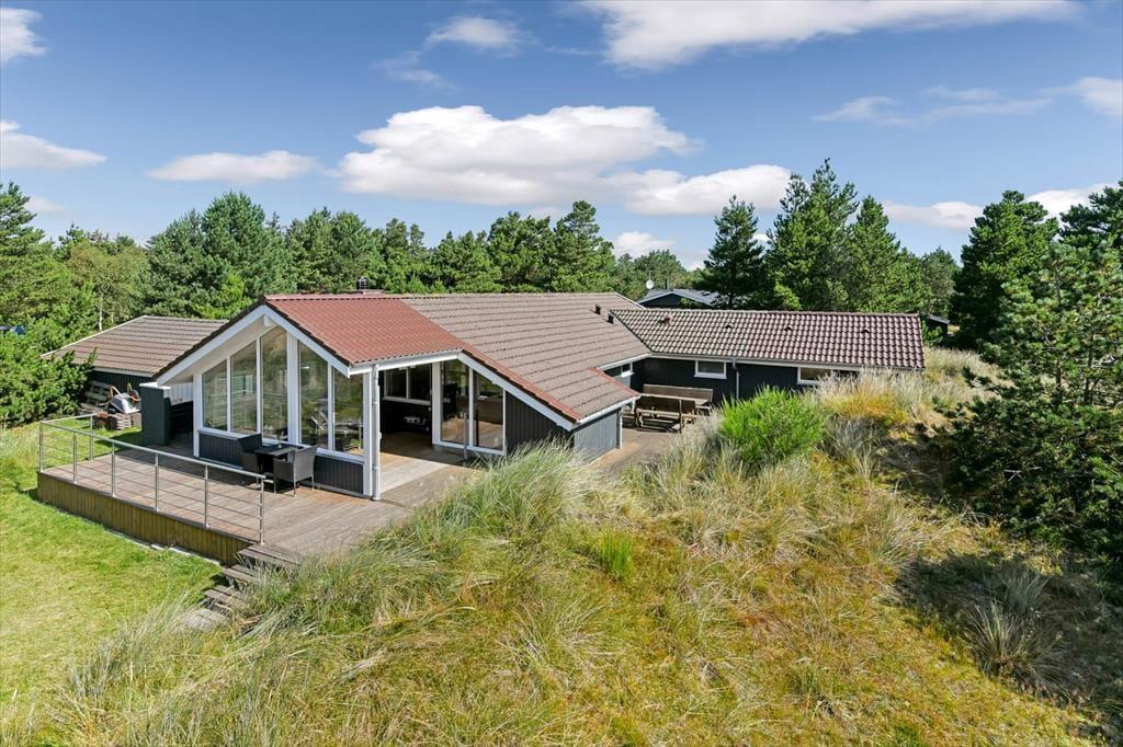 Entspannte Stunden in der Sonne werden von den umliegenden kleinen, mit Strandhafer bewachsenen Dünen und den schönen Nadelbäumen untermalt. Eine große Terrasse erstreckt sich gen Osten, Süden und Westen, sodass du den gesamten Tag über einen passenden Aufenthaltsplatz findest. Abends bietet sich der abgeschirmte, überdachte Teil des Terrassenareals sehr schön als Rückzugsort an. Deinen Pkw parkst du gut geschützt im Carport. Ein Schaukelgerüst mit einer Rutsche und ein Spielhaus sorgen bei deinen Kindern für Spaß und Unterhaltung.