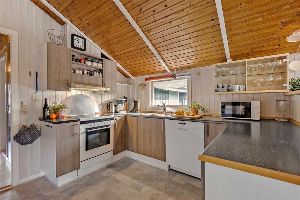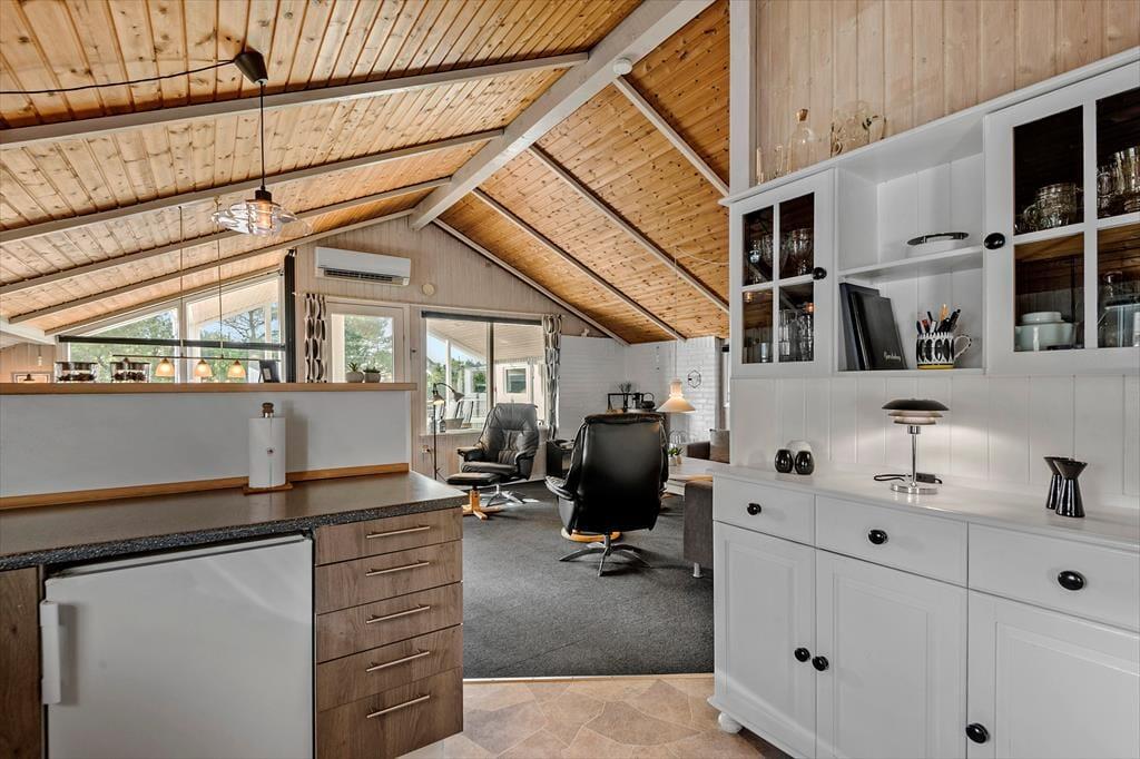 Mit drei Schlafräumen und einem Badezimmer erwartet dich eine gelungene Raumaufteilung. Obwohl du dich sicher gern in der Sauna entspannst, wirst du einen Großteil deiner Zeit garantiert mit deinem Liebsten im Wohnraum verleben. Der Wohnraum besticht mit hohen Decken und großen Fensterpartien. In Kombination mit dem Kaminofen genießt du eine gemütliche Wohnatmosphäre. Stimmungsvoll und schön geht es während entspannter Stunden in der Polstersitzgruppe und während vergnügter Spieleabende rund um den Esstisch zu. Die gut ausgestattete Küche ist offen mit dem Wohnraum verbunden, sodass du selbst während der Zubereitung der Mahlzeiten die Nähe deiner Lieben im Wohnraum genießt und am Familienleben teilnimmst.
