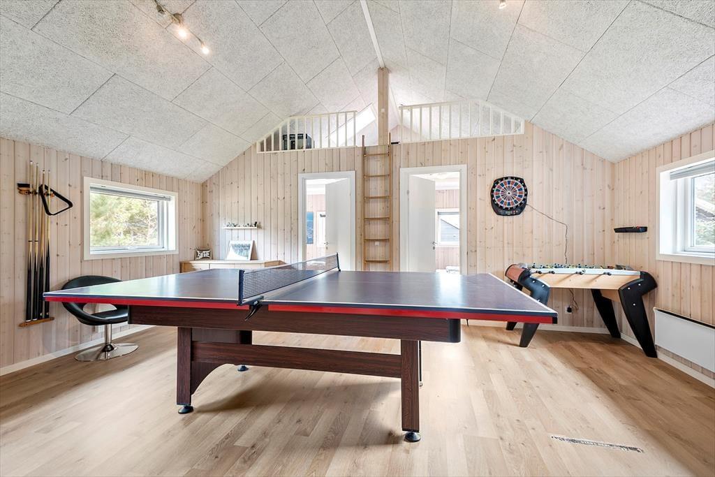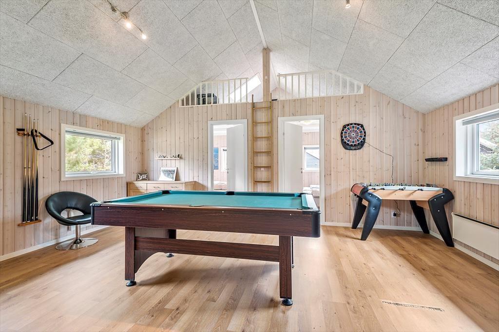 Port Arthursvej 49 ist eine fantastische Urlaubsadresse für diejenigen, die vergnügte und entspannte Urlaubtage im Familien- oder Freundeskreis verleben möchten. Mit vier Schlafräumen und zwei Badezimmern beherbergt das Haus bis zu acht Personen. Falls du nicht gerade Blåvand und die Umgebung erkundest, kannst du dir mit deinen Lieben die Zeit an Billardtisch und Tischtennisplatte vertreiben oder es dir im Whirlpool und in der Sauna so richtig gut gehen lassen.