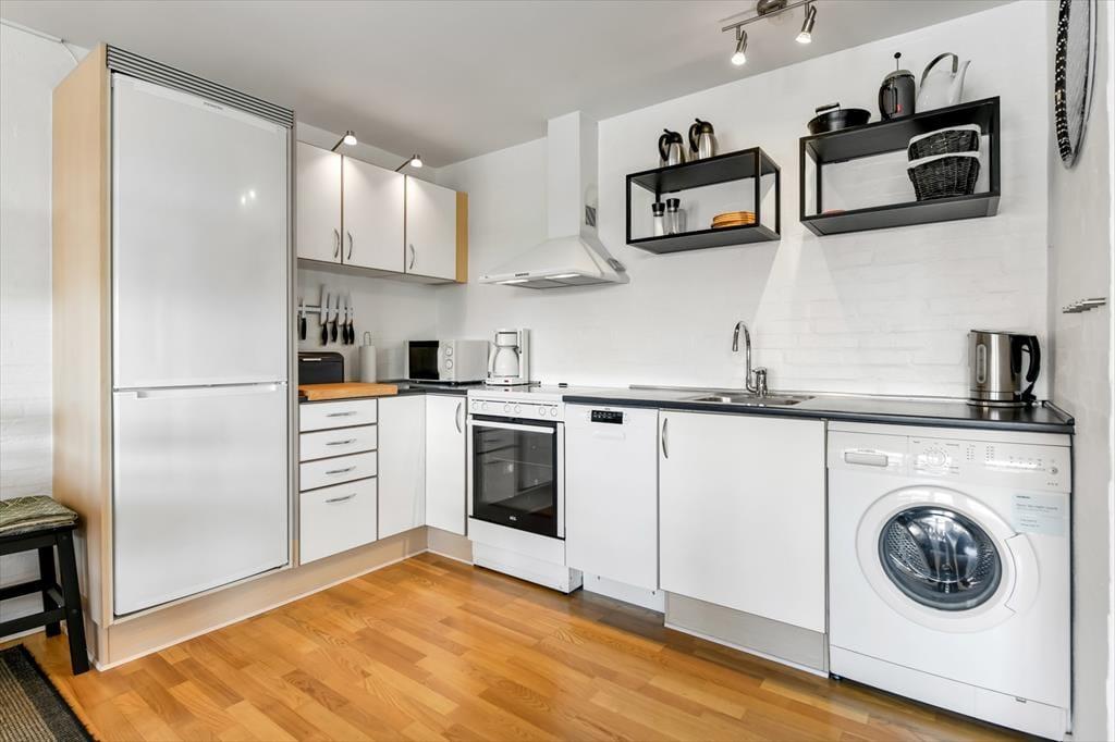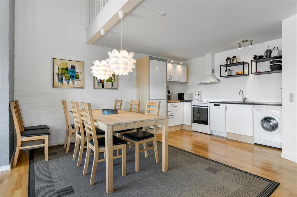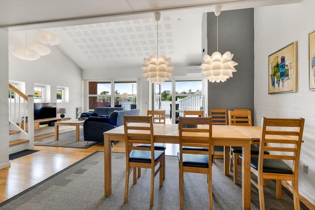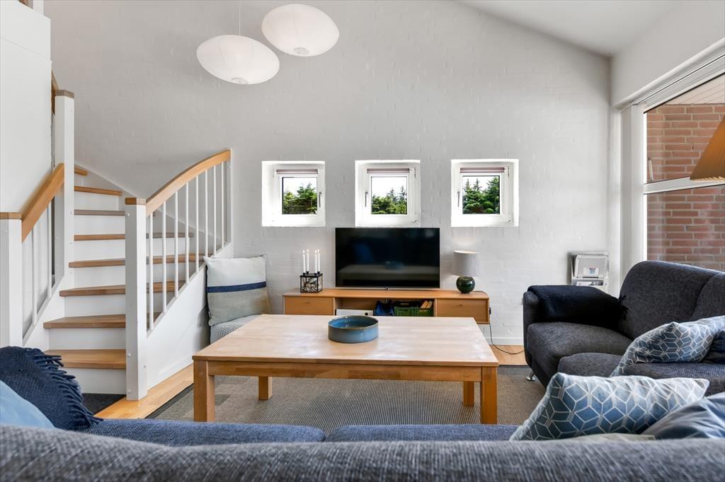 Wenn du nicht gerade Blåvand und die Umgebung erkundest, laden die hellen Räume und die schönen Möbel des Ferienhauses dazu ein, drinnen völlig zur Ruhe zu kommen. Du und deine Lieben können es euch im Wohnzimmer gemütlich machen, wo es mehrere Sofas gibt, auf denen ihr alle bequem sitzen oder vielleicht sogar mit Büchern, Zeitschriften oder einem Film auf dem Flachbildfernseher entspannen könnt. An die jüngsten Gäste wurde gedacht, da es ein Gittertor gibt, das an der Treppe angebracht werden kann. Je nach Wetter kannst du das Sonnenlicht, das durch die Fenster fällt, genießen oder das Flackern der Flammen im eingebauten Kamin. Wenn du einen Eintopf aufsetzt oder eine Lasagne in den Ofen schiebst, wird sich der Duft bald im offenen Küchenbereich verbreiten und zur gemütlichen Atmosphäre beitragen. Die vier Schlafzimmer des Hauses sind gleichmäßig auf die beiden Etagen verteilt und sowohl sie als auch das Badezimmer sind hell und schön wie der Rest des Hauses.