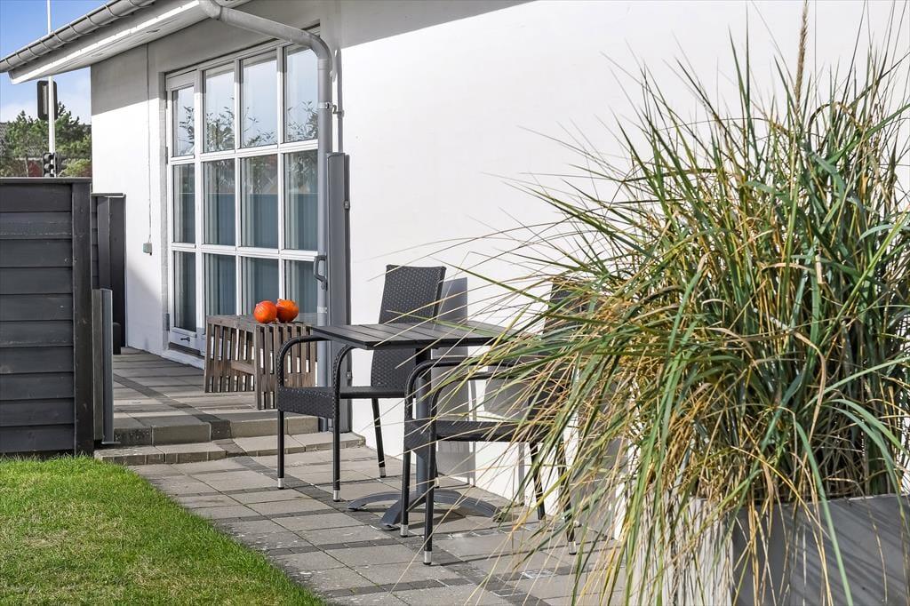Obwohl es richtig schön ist, sich im Wohnraum aufzuhalten, wird es euch an sonnigen, warmen Tagen garantiert unwiderstehlich hinaus ins Freie ziehen. Vor der Eingangstür in Richtung Straße steht eine Terrasse zur Verfügung. Bedeutend beliebter wird bei euch allerdings die an der Südseite des Hauses gelegene Terrasse sein. Der mit Strandhafer bewachsene Naturwall und die Terrassenumrandung schirmen die Außenbereiche gut ab, sodass ihr in ruhigem Rahmen lesen, Sonnenbäder und Grillabende genießen könnt. Die Grasfläche bietet ausreichend Platz für eine Decke in der Sonne. Auf dem Schotterareal vor dem Ferienhaus können zwei Pkws geparkt werden. Alternativ bietet die Garage des Hauses eine Parkmöglichkeit.