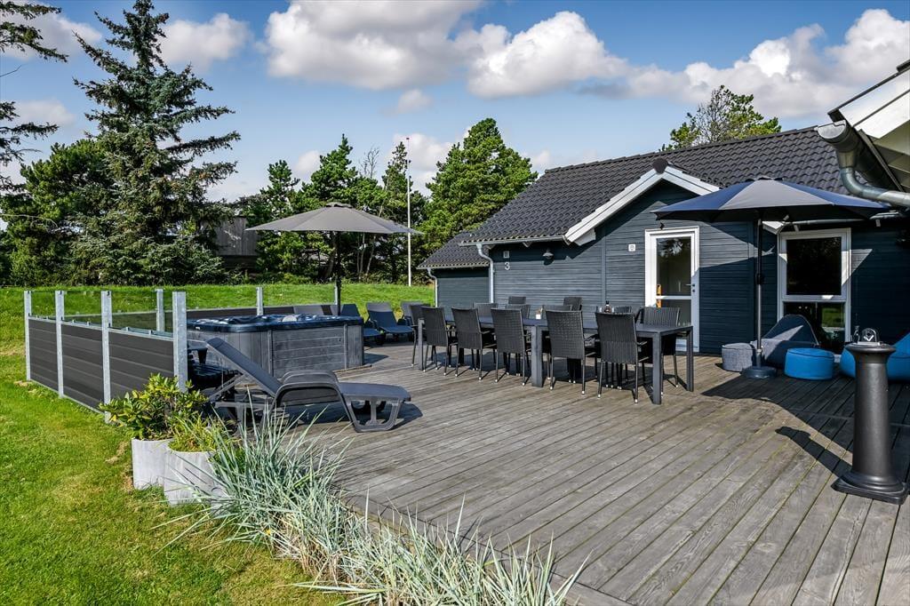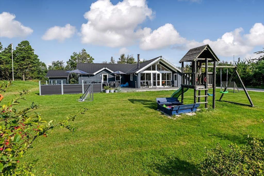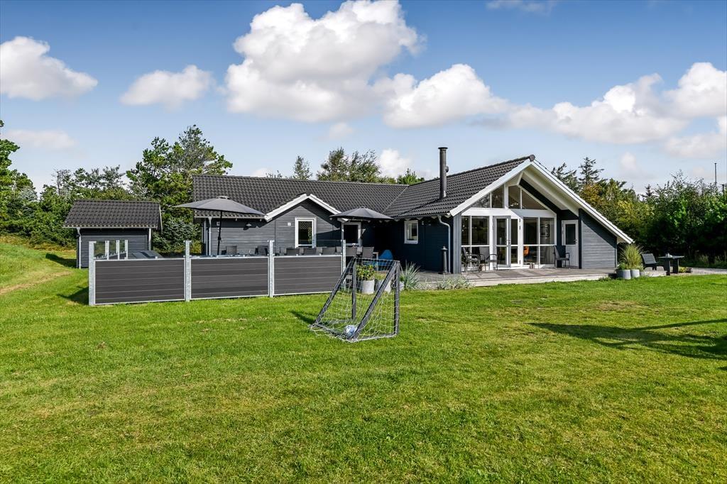 Sonnige Tage genießt du mit deinen Lieben gern in aller Ruhe auf dem 1.500 m² großen Grundstück. Auf dem großen Terrassenareal wirst du stets einen schönen Aufenthaltsplatz finden, der deinen persönlichen Vorlieben entspricht - vom Morgenkaffee in der Sonne, über eine kleine Mittagspause im Schatten des Sonnenschirms bis zu einem geselligen Tagesausklang mit einem köstlichen Essen vom Grill. Bevor die Kinder abends ins Bett gehen, können sie die letzten überschüssigen Energien auf der Rasenfläche und auf dem Spielgerüst verbrennen. Wenn die Dunkelheit über Blåvand hereinbricht und der Badeort zur Ruhe kommt, ist es für dich an der Zeit, erholsame Momente im warmen Wasser des Outdoor-Whirlpools zu genießen. Sicher nicht die schlechteste Art, einen gelungenen Urlaubstag zu beenden!