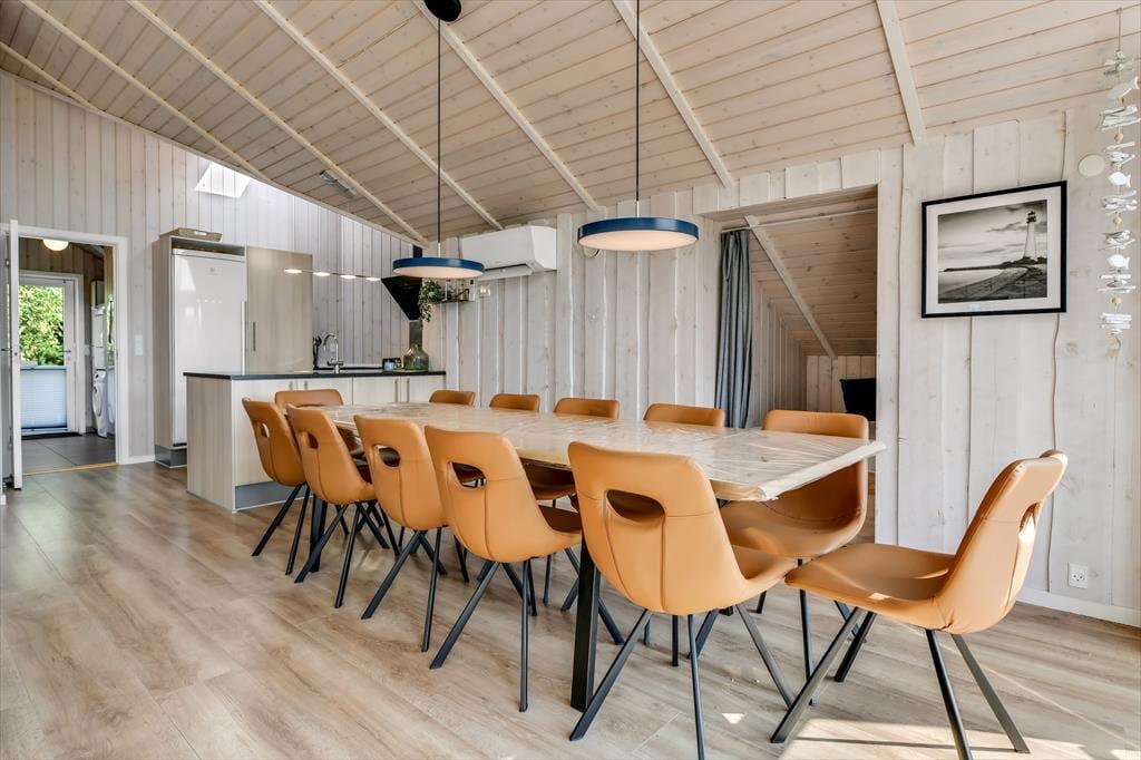 In einer kleinen, mit Schotter versehenen Sackgasse. Nur einen kurzen Spaziergang von Blåvands Hauptgeschäftsstraße entfernt, lädt dieses Ferienhaus zu gelungenen Urlaubstagen im Familienkreis ein. Das Haus beherbergt bis zu 10 Personen. Aber auch, wenn ihr mit weniger Personen anreist, ist es einfach herrlich, in diesem hellen, gut durchdachten Mietobjekt mit einer Fülle toller Annehmlichkeiten erholsame Urlaubstage zu verleben.