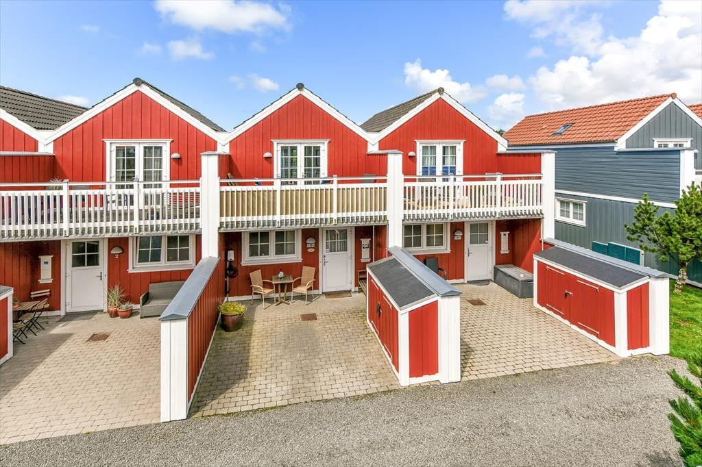 Es handelt sich um ein helles und freundliches Reihenhaus mit roter Holzfassade und einem gut durchdachten Grundriss über zwei Etagen.
