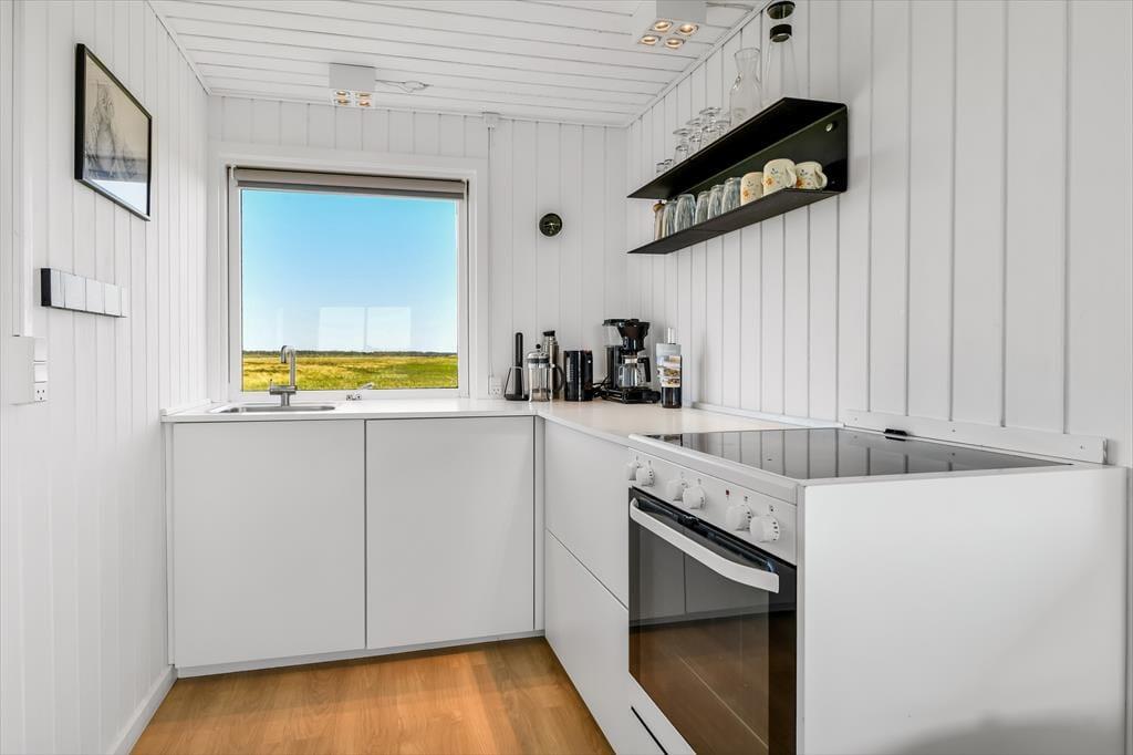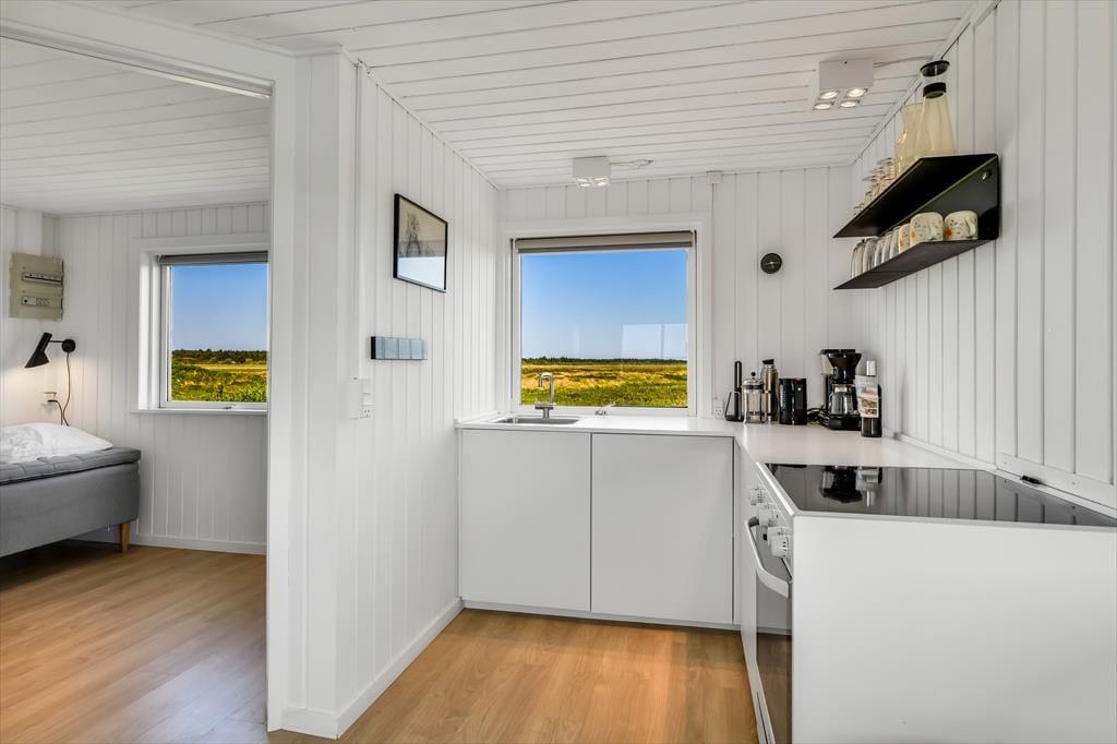 Bei diesem Mietobjekt darfst du dich auf einen klassischen Ferienhausurlaub freuen - allerdings in moderner Form. Das kleine Holzhaus wurde einer gelungenen Renovierung unterzogen und präsentiert sich seither hell, schlicht und luftig. Wie in längst vergangenen Tagen üblich, ist das Badezimmer ausschließlich von außen, über die überdachte Terrasse erreichbar. Dies ist jedoch ein guter Grund, früh am Morgen hinaus an die frische Luft zu treten und zu entscheiden, ob du das Frühstück im Freien oder lieber im Ferienhaus genießen möchtest. Der Essplatz und die offene Küche verzaubern mit einem reizvollen Ausblick über die offene Landschaft. Ganz gleich, ob du in aller Ruhe am Esstisch die Tageszeitung liest oder in der Küche die Mahlzeiten zubereitest, du spürst zu jeder Zeit die Nähe zur Natur.
