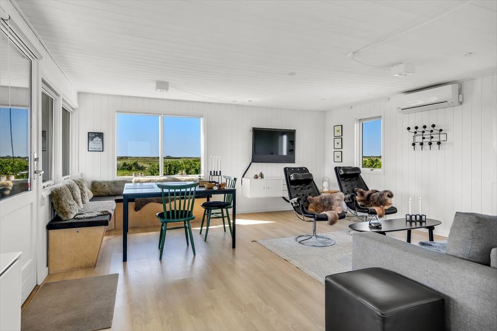 Der Hvidbjerg Strandvej ist eine perfekte Urlaubsadresse, sofern du dich gern inmitten wunderschöner Natur erholst. Die Nachbarhäuser liegen angenehm weit entfernt und du genießt ein Maximum an Bewegungsfreiheit und Privatsphäre. Den tollen Hvidbjerg Strand, der sich bis zur Halbinsel Skallingen erstreckt, erreichst du zu Fuß binnen weniger Minuten. Die landschaftlich überaus reizvolle Halbinsel ist Teil des Nationalpark Wattenmeer und lädt zu Wanderungen in unberührter Natur und zu Vogelbeobachtungen ein. Falls dir der Sinn eher nach einem großen Eis, einem Shoppingbummel, einem Restaurantbesuch oder einer Runde Minigolf steht, kannst du jederzeit in den nur wenige Kilometer entfernten Ortskern des lebendigen Badeortes Blåvand aufbrechen.