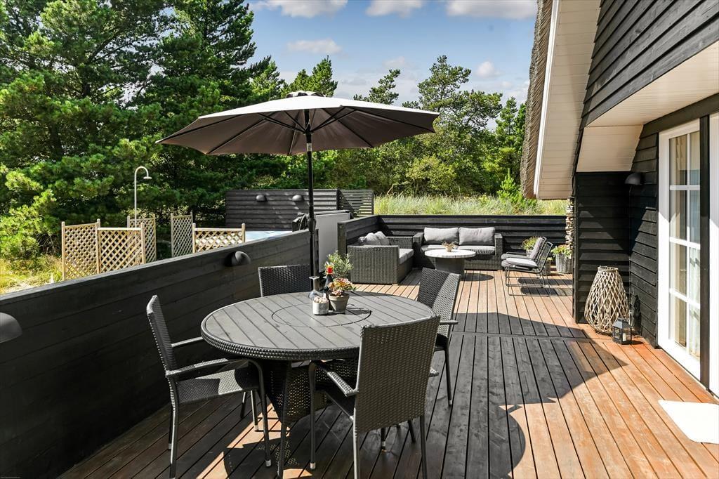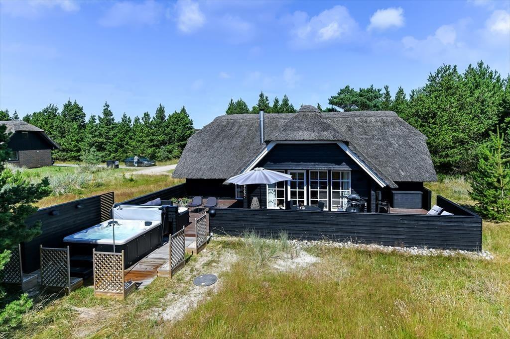 Wenn du dich für dieses bezaubernde Reetdachferienhaus in Blåvand entscheidest, darfst du dich auf viele Indoor- und Outdoor-Wellnessstunden freuen! Das Haus, das ruhig in einer Sackgasse platziert ist, verwöhnt mit einem Whirlpool und einer Sauna im größeren Badezimmer und mit einem zusätzlichen Whirlpool draußen auf der Terrasse. Am hübschen Wohnraum und an den beiden Schlafräumen ist ebenfalls sofort erkennbar, dass der Hauseigentümer keinerlei Mühe gescheut hat, einen richtig schönen, entspannten Rahmen für seine Gäste zu schaffen.