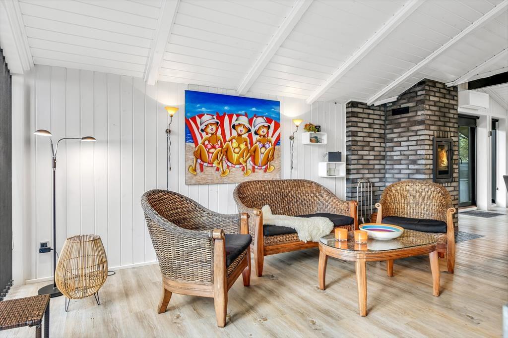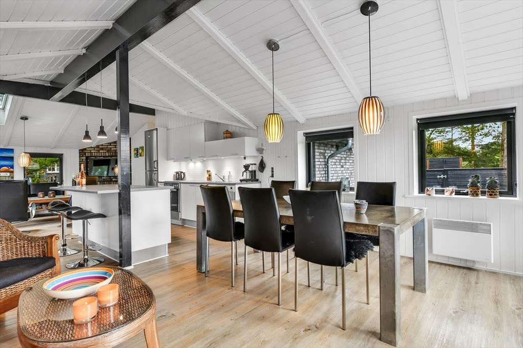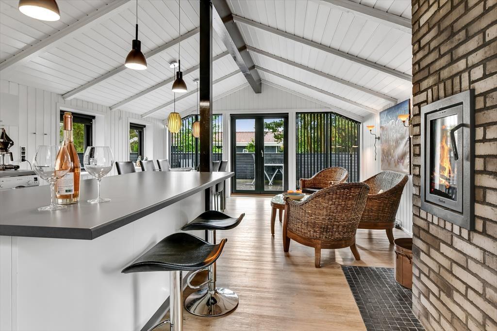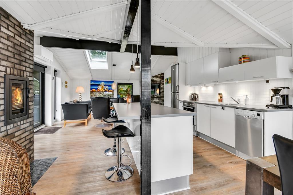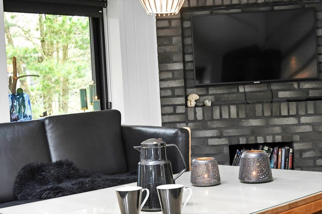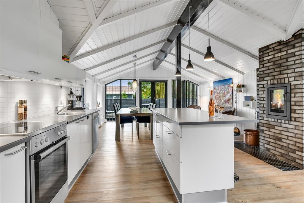 Wenn du dieses einladende Ferienhaus betrittst, wirst du von einer hellen und geräumigen Atmosphäre empfangen. Das Herz des Hauses ist die offene Küche, die wunderschön mit dem Wohnzimmer integriert ist. Hier kannst du gemütliche Abendessen am Esstisch genießen und anschließend auf dem Sofa vor dem Smart-TV entspannen. Der Kaminofen verbreitet Wärme und Gemütlichkeit an kühlen Abenden, während die großen Fenster viel Tageslicht hereinlassen. Die drei guten Zimmer sind alle mit einem TV ausgestattet, sodass reichlich Privatsphäre und Unterhaltung für die ganze Familie geboten ist. Das Ferienhaus ist durchgehend in einem modernen Stil gestaltet, der gleichzeitig den klassischen Ferienhauscharme bewahrt.
