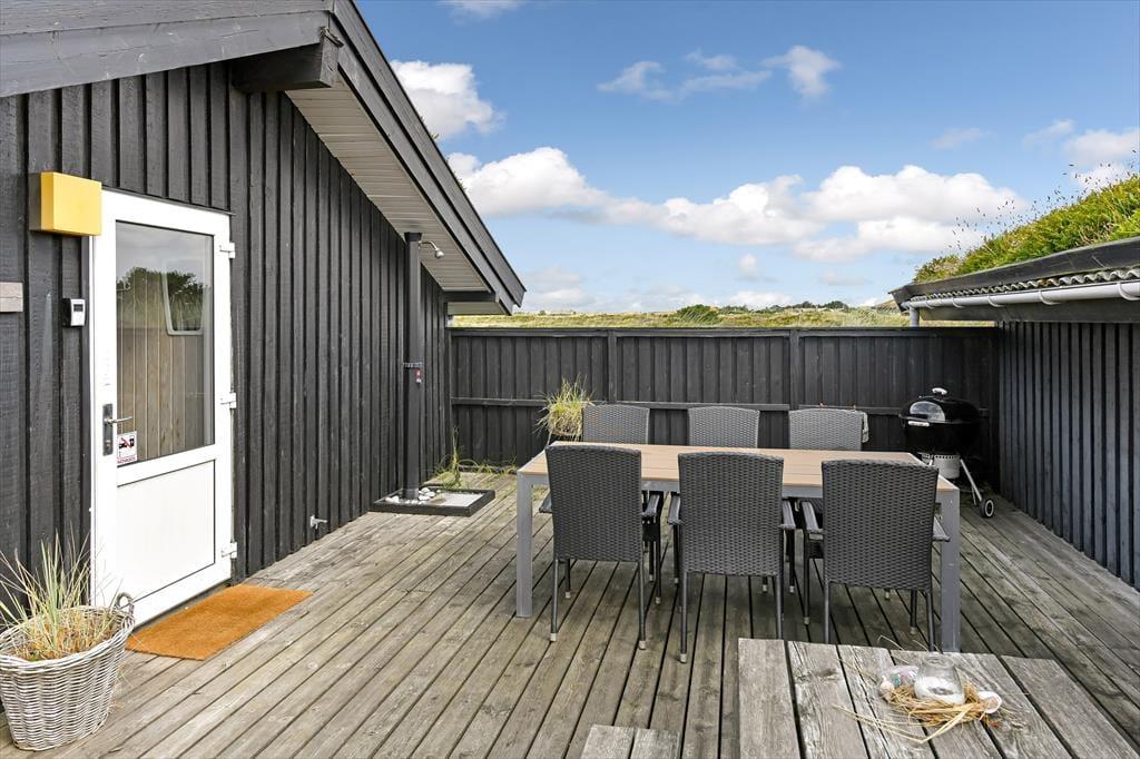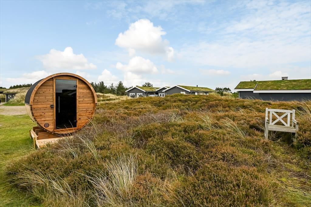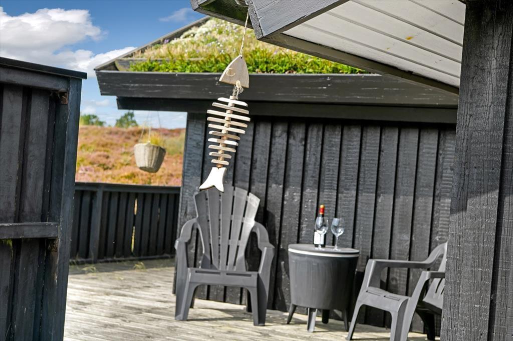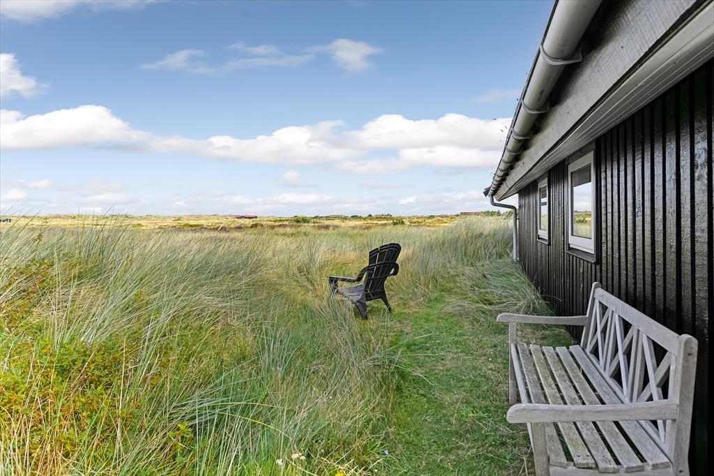 Das Terrassenambiente des Ferienhauses ist sowohl groß als auch sonnig und gut abgeschirmt, sodass du, wenn du Kaffee gekocht, Kuchen gebacken oder ein gutes Mittagessen in der Küche gezaubert hast, die Leckereien wunderbar an der frischen Luft genießen kannst. Wenn du dich vollkommen entspannen möchtest, ist es wohltuend, in solch idyllischer Umgebung mit Sonne von oben, dem Duft der Heidelandschaft und freiem Blick auf die Natur zu faulenzen. Solltest du Lust auf einen Spaziergang haben, wird dich der Anblick des Blåvandshuk-Leuchtturms vielleicht inspirieren, in Richtung Küste zu gehen. Das Meer wartet nur ein paar hundert Meter entfernt, sodass du je nach Wetter vielleicht die rollenden Wellen hören kannst, während du deine Schuhe schnürst und dich bereit machst, deine private Oase zu verlassen.