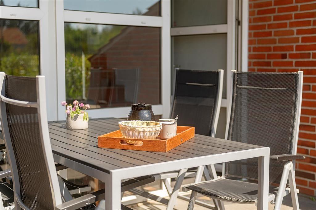 An sonnigen Tagen machst du es dir am besten mit einem Eiskaffee oder deinem Lieblingsgetränk auf der schönen Terrasse gemütlich, die sich in Verlängerung des Wohnraums befindet. Die Terrasse ist zu den Nachbarn gut abgeschirmt und eignet sich hervorragend, um sich entspannt zurückzulehnen und die Augen zu schließen - ganz gleich, ob du dich direkt in der Sonne oder im Schatten des Sonnenschirms niederlässt. Die grünen Gemeinschaftsareale bieten deinen Kindern Platz zum Spielen. Wenn du ihnen dabei zuschauen möchtest, steht eine Picknickbank bereit. Eine Wäscheleine zum Trocknen eurer Badesachen ist ebenso vorhanden wie ein Gemeinschaftsparkplatz.