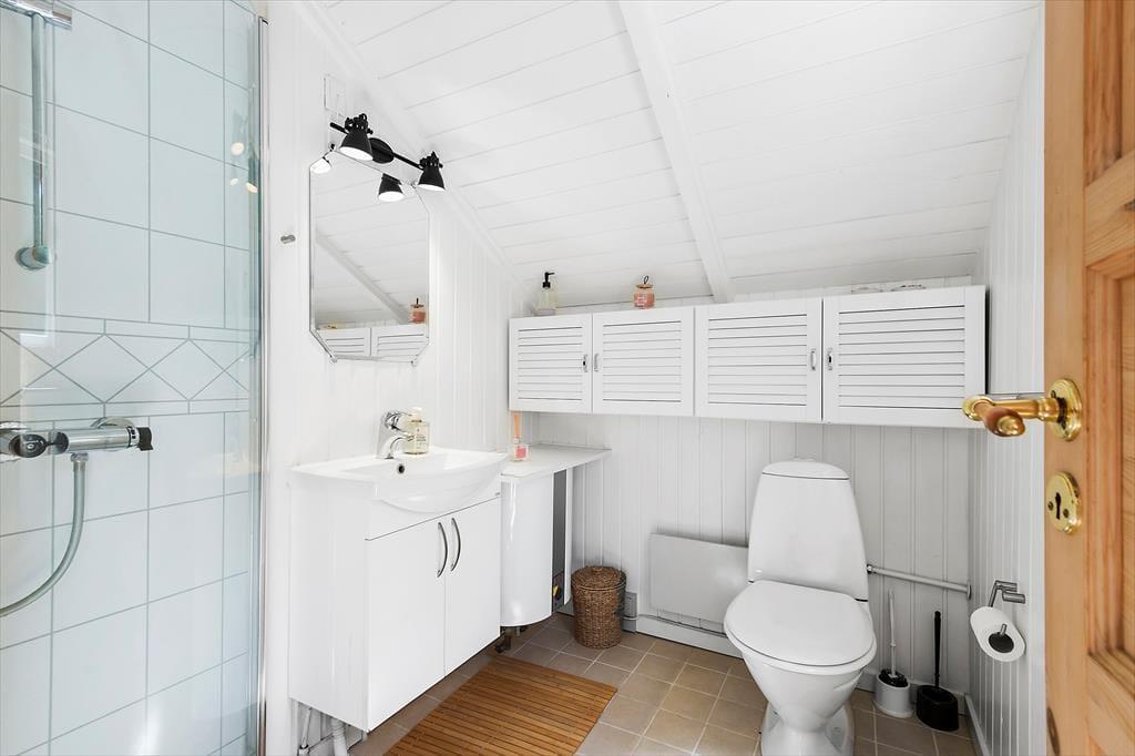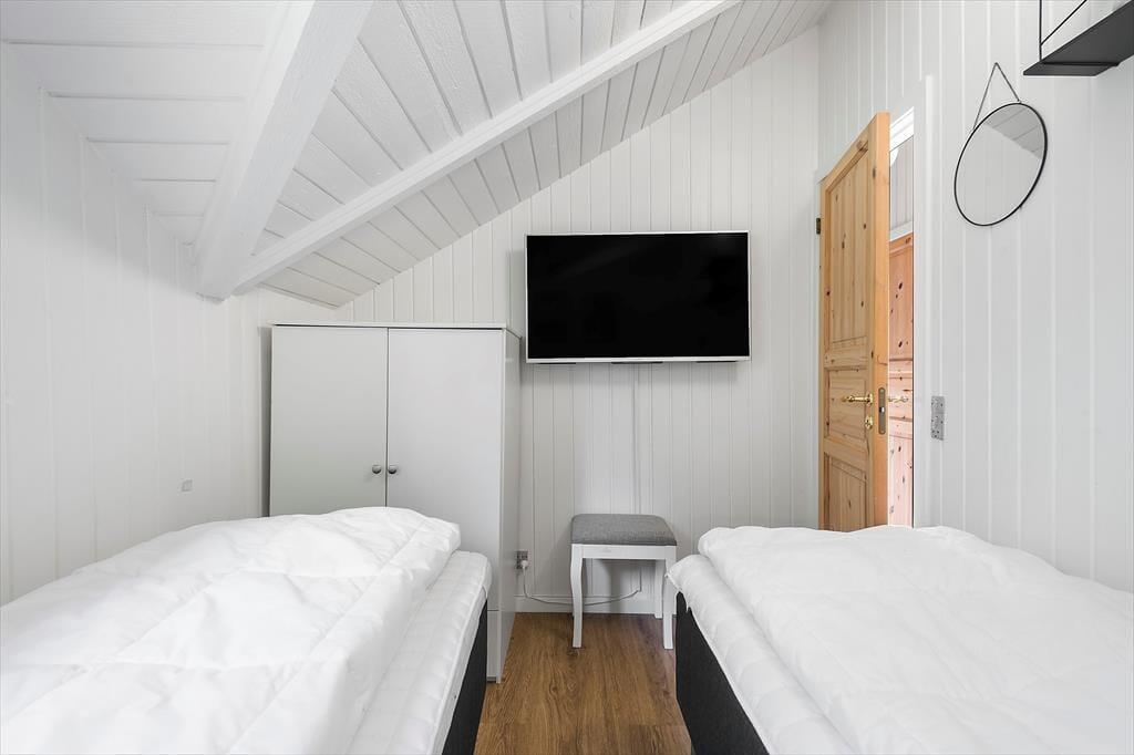 Der südlich vom Haus gelegene Teil des Naturgrundstücks verzaubert mit einem herrlichen Blick über die spektakuläre Küstenlandschaft. Schön geht es allerdings auch am nördlichen, gänzlich ungestörten Ende des Grundstücks zu, an dem du mit deinen Lieben auf der Grasfläche Wikingerschach und andere unterhaltsame Outdoor-Spiele spielen kannst. Falls dir der Sinn eher nach einem Nickerchen auf einer guten Sonnenliege steht, bietet sich die schöne Holzterrasse an, die gut durch eine Terrassenumrandung abgeschirmt wird. Am Abend kannst du mit deinen Lieben auf der Terrasse grillen, das Abendlicht genießen und dem abendlichen Gesang der Vögel in den Bäumen lauschen. Der Schuppen neben dem Haus bietet bei Bedarf Platz zum Abstellen von Fahrrädern, eines Kinderwagens und ähnlich sperrigen Dingen.