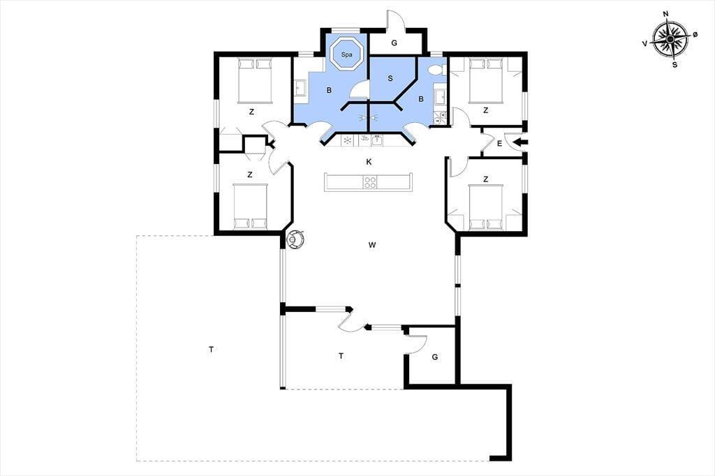 Das 115 m² große Ferienhaus hat eine schöne Atmosphäre, die dazu einlädt, den Urlaub in ganz entspanntem Tempo zu genießen. Zwei Familien mit Kindern können hier wunderbar zusammen die Urlaubstage verbringen, denn der Grundriss ist durchdacht, sodass die vier Schlafzimmer und zwei Badezimmer gleichmäßig in zwei komfortable Schlafbereiche aufgeteilt sind. In einem der Badezimmer gibt es sowohl Whirlpool als auch Sauna, sodass du, wenn du in der Stimmung für Wellness und Entspannung bist, hier auf die angenehmste Weise Wärme tanken kannst. Auch das Kochen kann zum reinen Vergnügen werden, wenn es in der gut ausgestatteten Küche des Hauses stattfindet, die Teil des gemütlichen und geräumigen Wohnzimmers ist. Tagsüber fällt viel Licht ein, und an einem kühlen Abend ist es herrlich, den Kamin anzuzünden, bevor ihr euch zu einem leckeren Mahl an den Tisch setzt oder einen Film auf dem großen Flachbildfernseher schaut.
