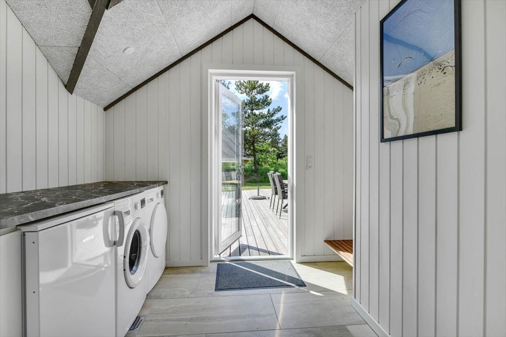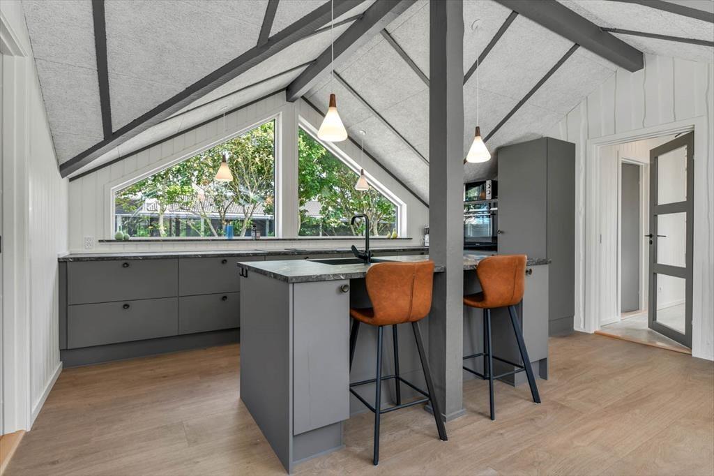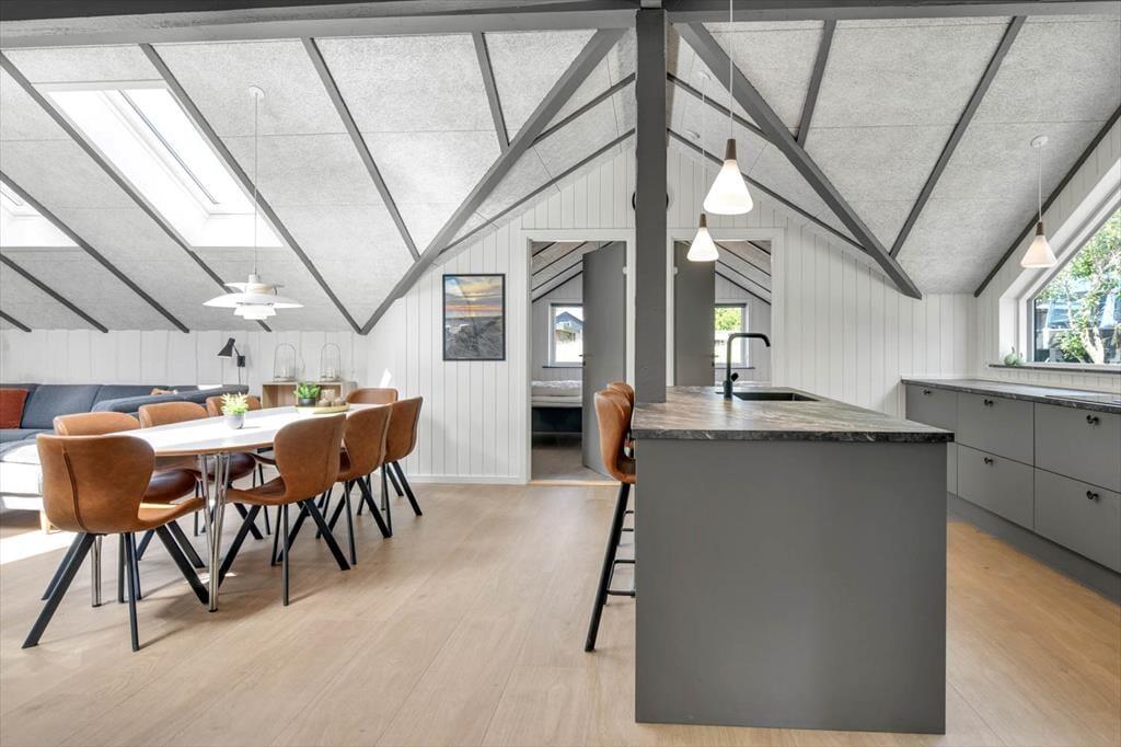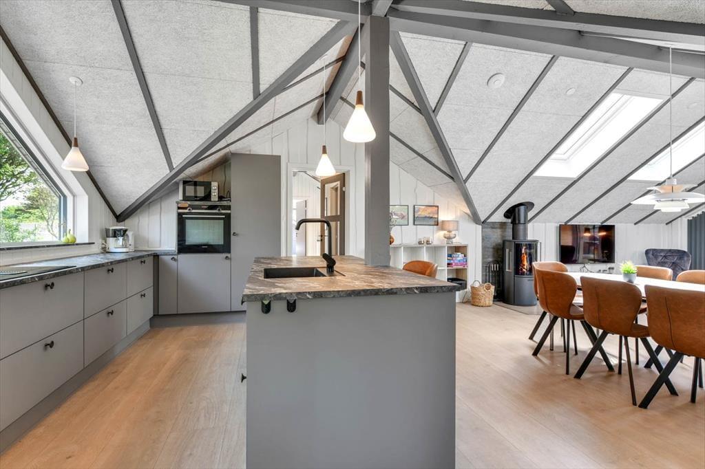 Das Ferienhaus in der Toldbodvej 3 empfängt dich mit einem hellen und einladenden Interieur. Hier erwartet dich eine tolle Küche, die perfekt zum Kochen und für gemütliche Stunden mit der Familie geeignet ist. Die schönen Badezimmer strahlen Luxus und Komfort aus, sodass du nach einem erlebnisreichen Tag eine entspannende Dusche genießen kannst. Das Wohnzimmer ist geräumig und gemütlich, und die große Sofaecke lädt zum Entspannen vor dem Fernseher oder mit einem guten Buch ein. Die Schlafzimmer des Hauses sind komfortabel und geschmackvoll eingerichtet, und als zusätzlichen Bonus gibt es ein charmantes Nebengebäude mit Doppelbett, das Platz für Freunde und Familie bietet.