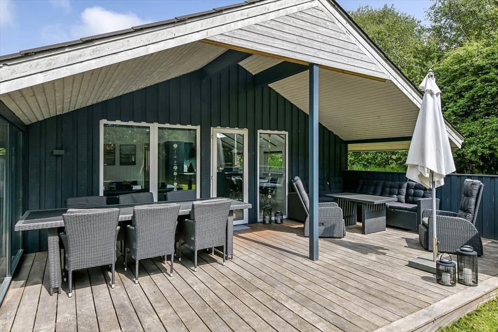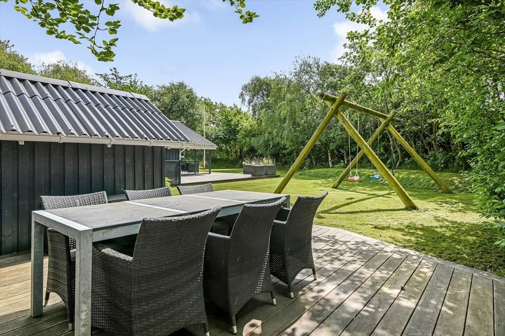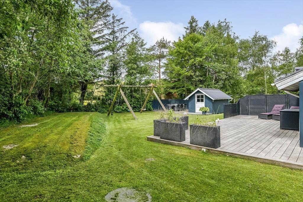 Das Grundstück des Ferienhauses ist eine wunderbare Oase mit sowohl grünen Flächen als auch gemütlichen Ecken, in denen du Ruhe und Entspannung finden kannst. Die gut angelegten Terrassen laden zu langen Tagen unter freiem Himmel ein – egal, ob du lieber sonnenbaden, grillen oder einfach mit einem guten Buch sitzen möchtest. Die Kinder können auf dem großen Grundstück frei spielen, während die Erwachsenen eine Tasse Kaffee im Gartenstuhl genießen. Das wunderschöne Grundstück ist von einer herrlichen Natur umgeben, die ein Gefühl von Frieden und Idylle vermittelt, obwohl das lebhafte Zentrum von Blåvand nur wenige Schritte entfernt ist.