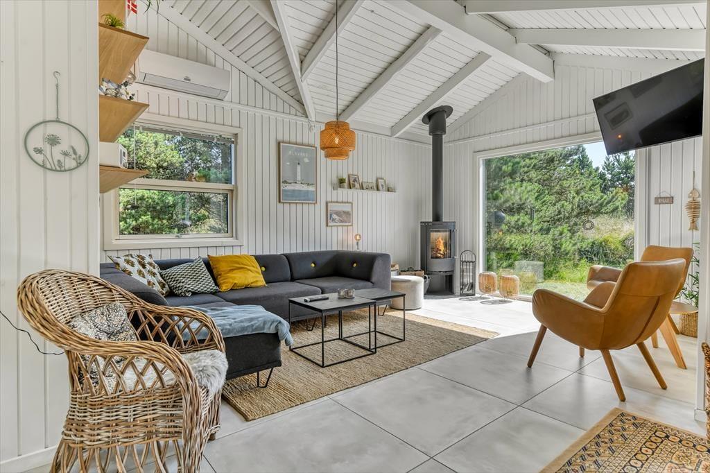 Das Ferienhaus liegt auf einem privaten Grundstück, was dir die Möglichkeit gibt, deinen Urlaub in Ruhe und Frieden zu genießen. Die große Terrasse ist der perfekte Ort zum Entspannen, und der Außen-Whirlpool ist eine ausgezeichnete Wahl für eine entspannende Zeit unter freiem Himmel. Hier kannst du die frische Luft genießen und vielleicht den Tag mit einem guten Buch oder einem Glas Wein vergehen lassen. Der Terrassenbereich eignet sich ideal sowohl für den Morgenkaffee als auch für lange Sommerabende, an denen du grillen und eine Mahlzeit unter den Sternen genießen kannst. Die Natur rund um das Ferienhaus ermöglicht es dir, dich ganz mit der westjütischen Landschaft verbunden zu fühlen und einen Geschmack der authentischen Urlaubserfahrung zu erleben.