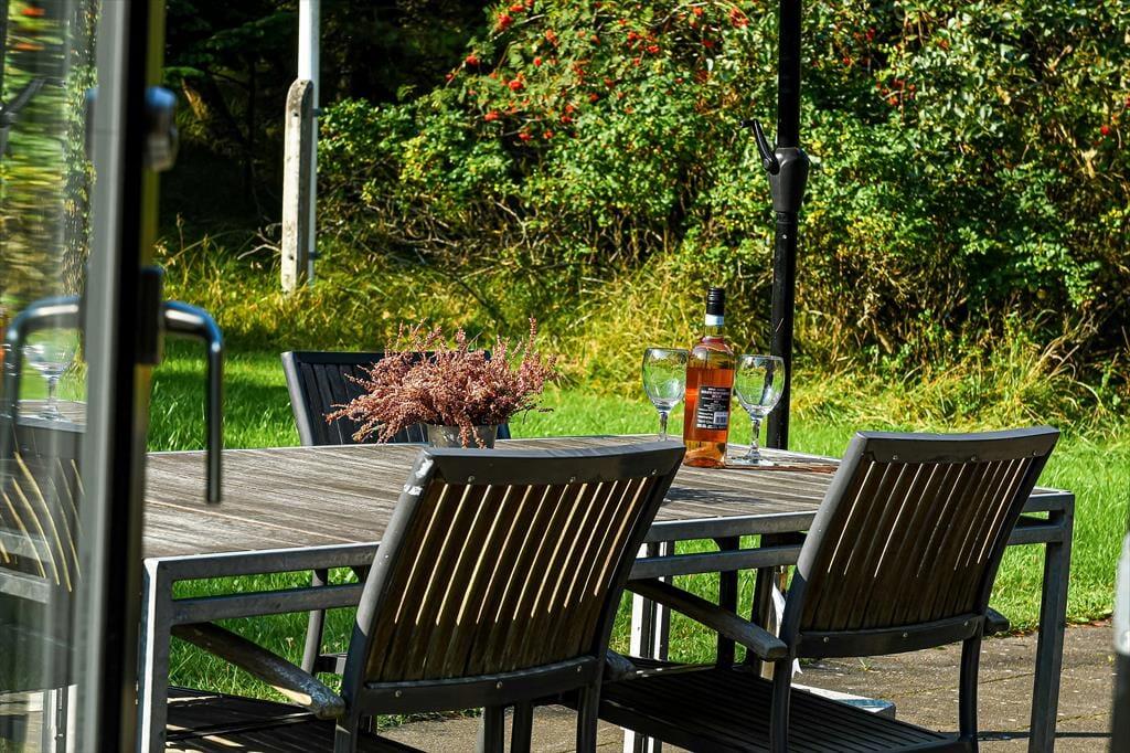 Das große Grundstück des Ferienhauses ist eine private Oase, in der du die frische Luft in vollen Zügen genießen kannst. Die umfangreiche Terrassenanordnung bietet dir die Wahl zwischen mehreren sonnigen oder schattigen Plätzen, je nach deinem Wunsch. Vom Küchen-/Essbereich aus hast du direkten Zugang zu den Terrassen, so dass du deine Mahlzeiten im Freien genießen oder dich mit einem guten Buch entspannen kannst, während die Sonne dich wärmt. Egal, ob du ein leckeres Abendessen grillen, einen ruhigen Nachmittag auf der Sonnenliege verbringen oder einfach einen stillen Moment im Garten genießen möchtest, hier findest du viele Möglichkeiten, genau das zu tun, worauf du Lust hast.