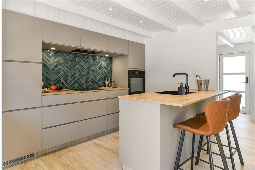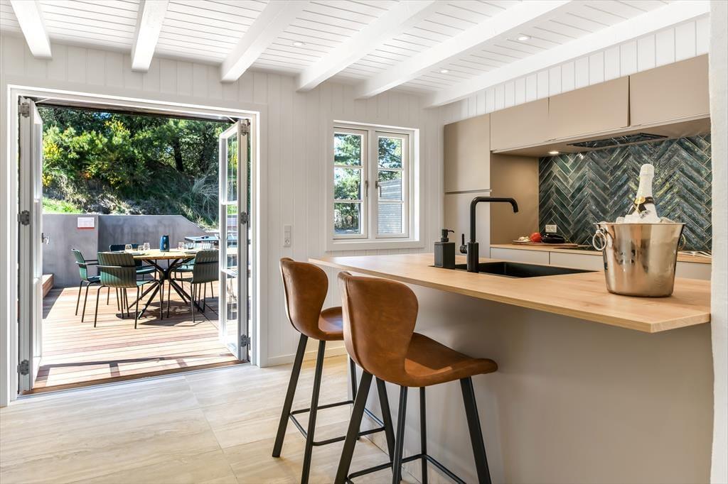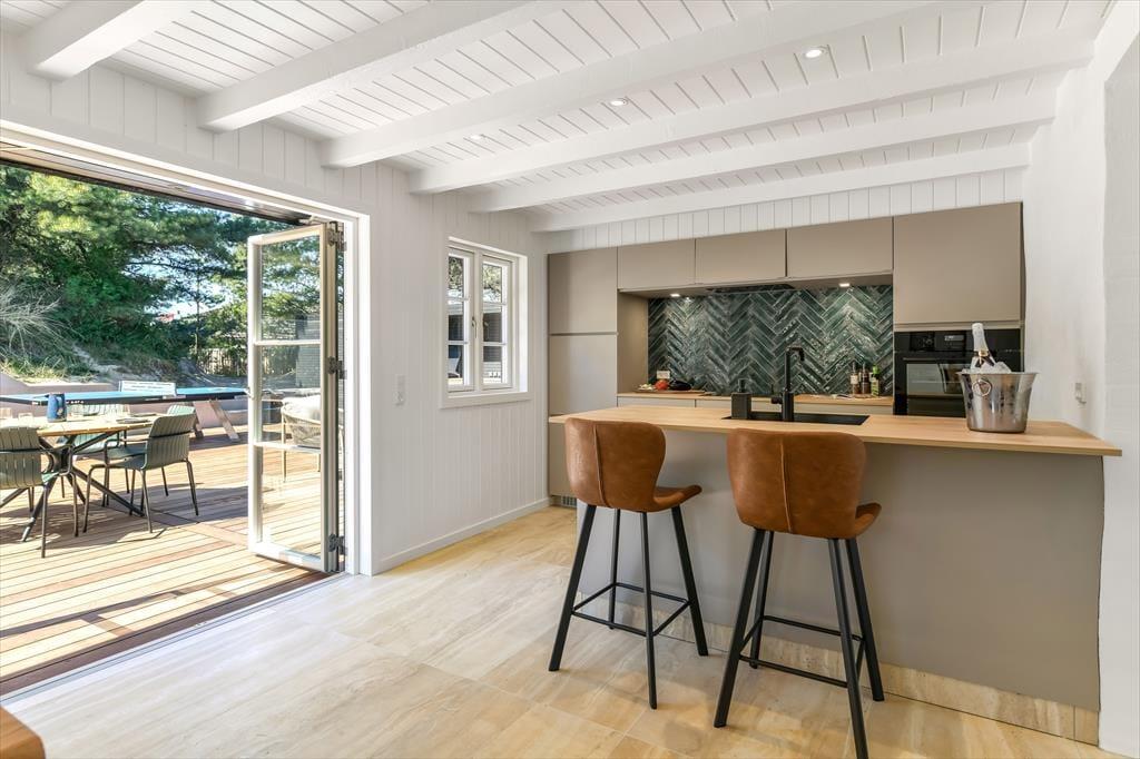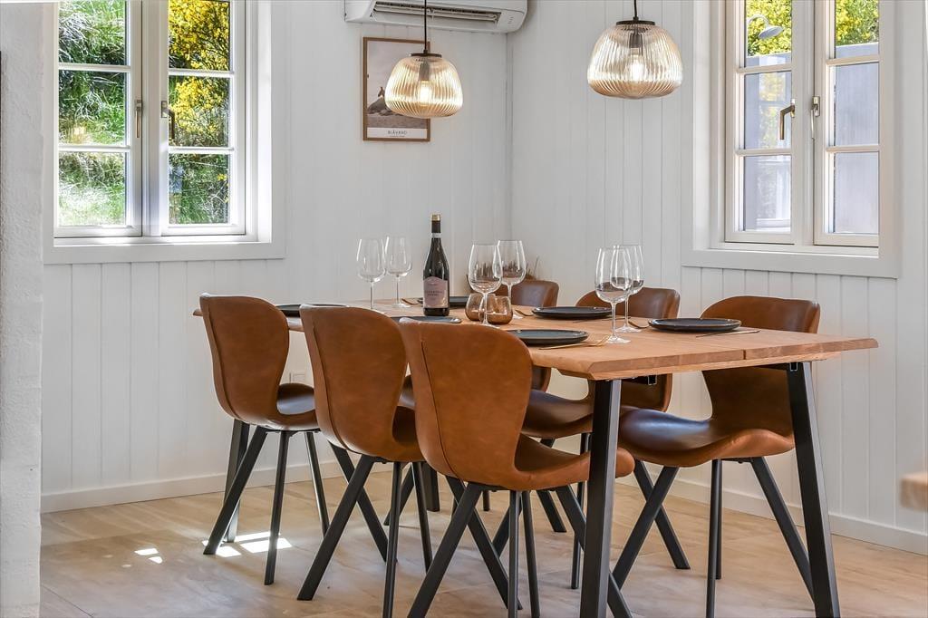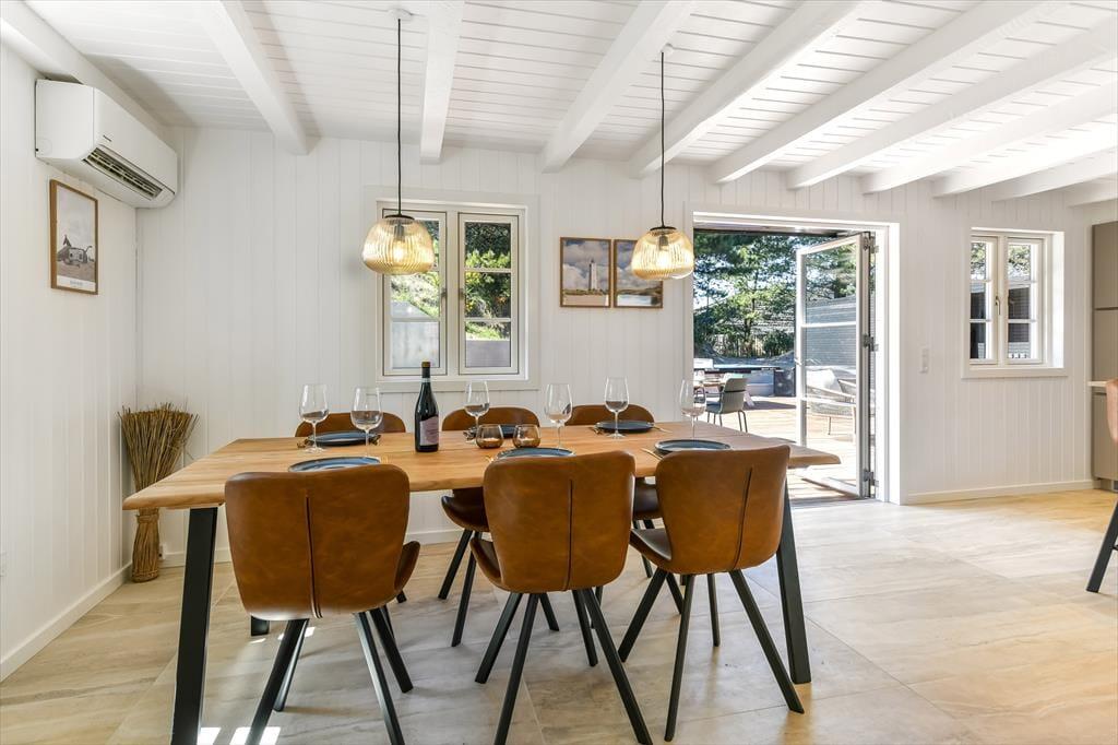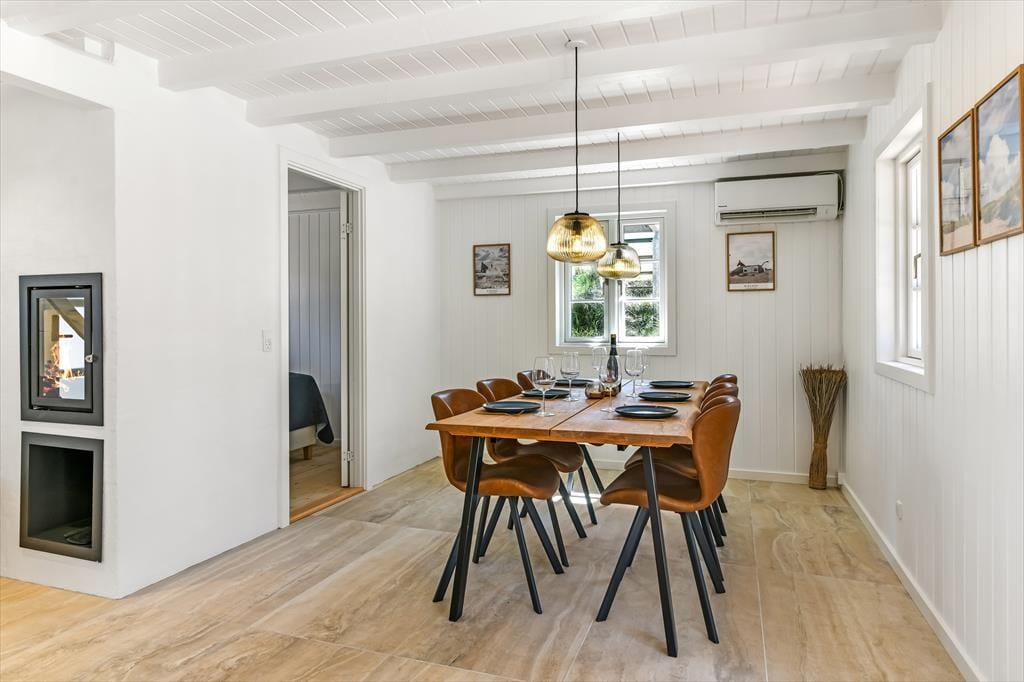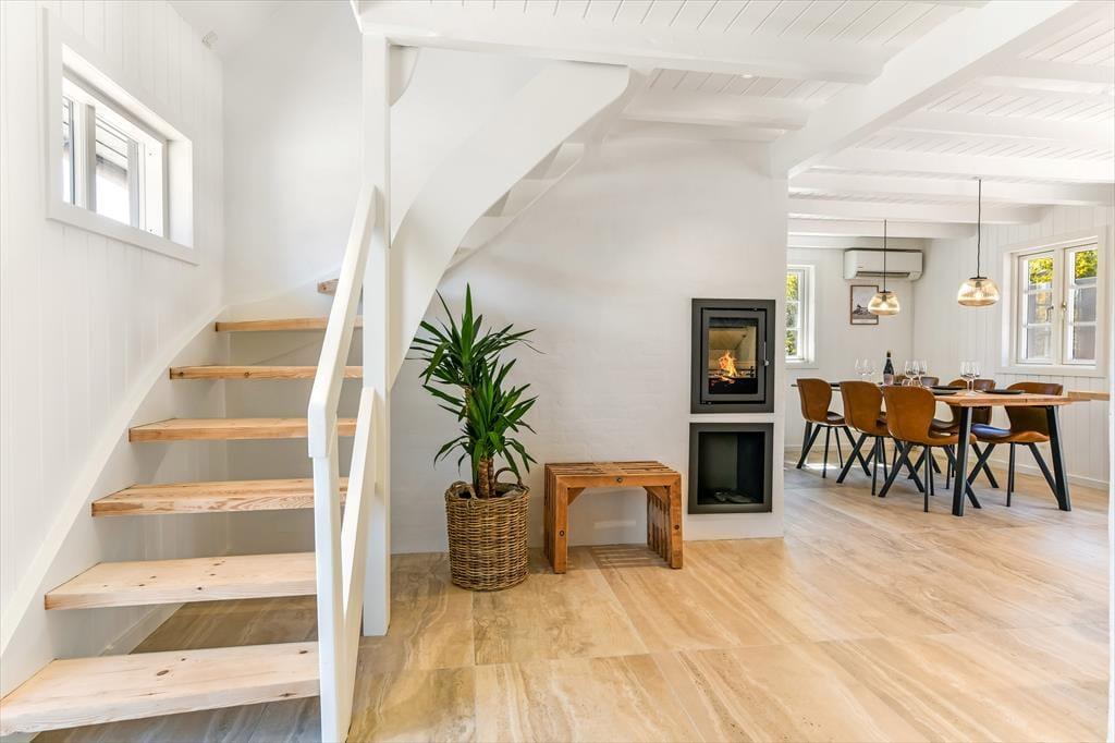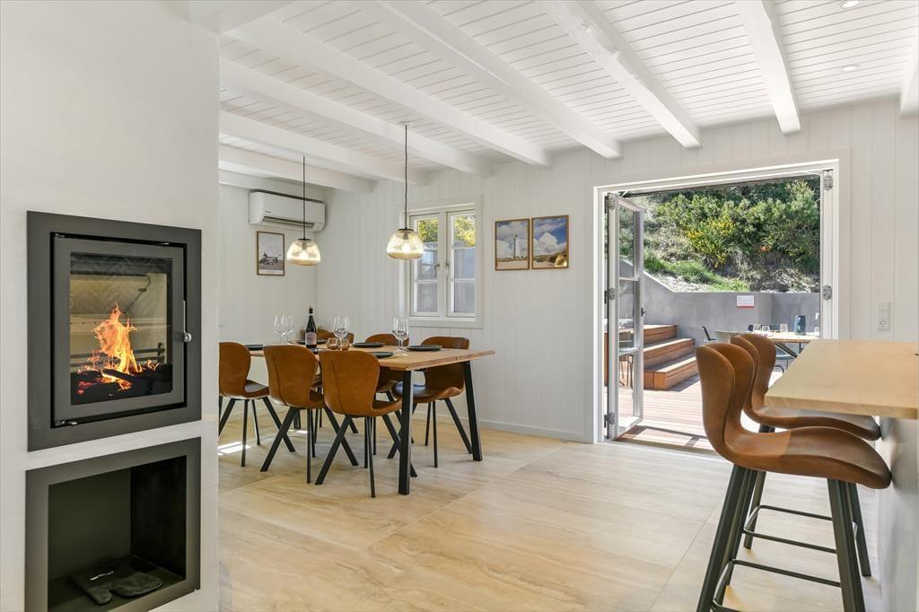 Innen ist das Ferienhaus mit Fokus auf Licht und Raumgestaltung eingerichtet. Der moderne Stil verleiht dem Haus eine frische und einladende Atmosphäre, in der du dich in den gut eingerichteten Wohnzimmern und der Küche entspannen kannst. Der Kaminofen trägt zur Gemütlichkeit bei, besonders an kühleren Tagen, während die großen Fenster für viel natürliches Licht und einen schönen Blick auf die Natur draußen sorgen. Das Haus ist perfekt zum Entspannen nach einem Tag voller Aktivitäten. Es ist ein idealer Ort für Familien und Gruppen, die zusammen in schöner Umgebung Zeit verbringen möchten.