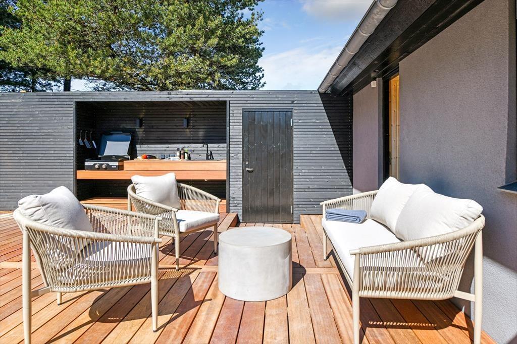 In einem der schönsten Gebiete von Blåvand wartet dieses moderne Ferienhaus um dir das beste Urlaubserlebnis zu bieten. Die schöne Einrichtung kombiniert modernen Komfort mit der Schönheit der Natur, sodass du Entspannung und Qualitätszeit mit der Familie in dieser ruhigen Oase genießen kannst.