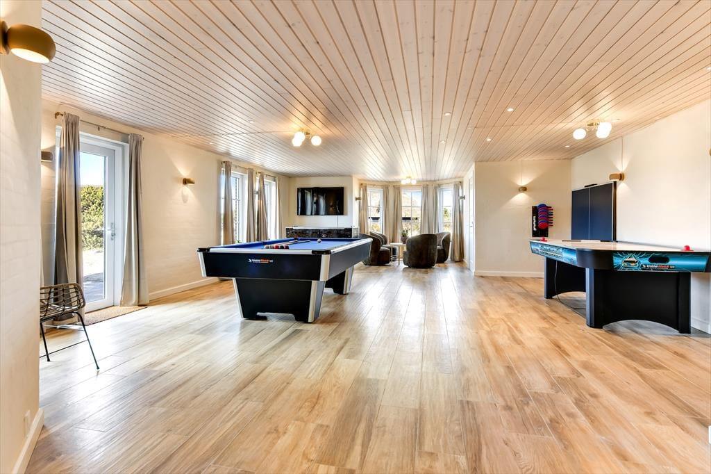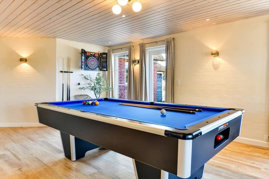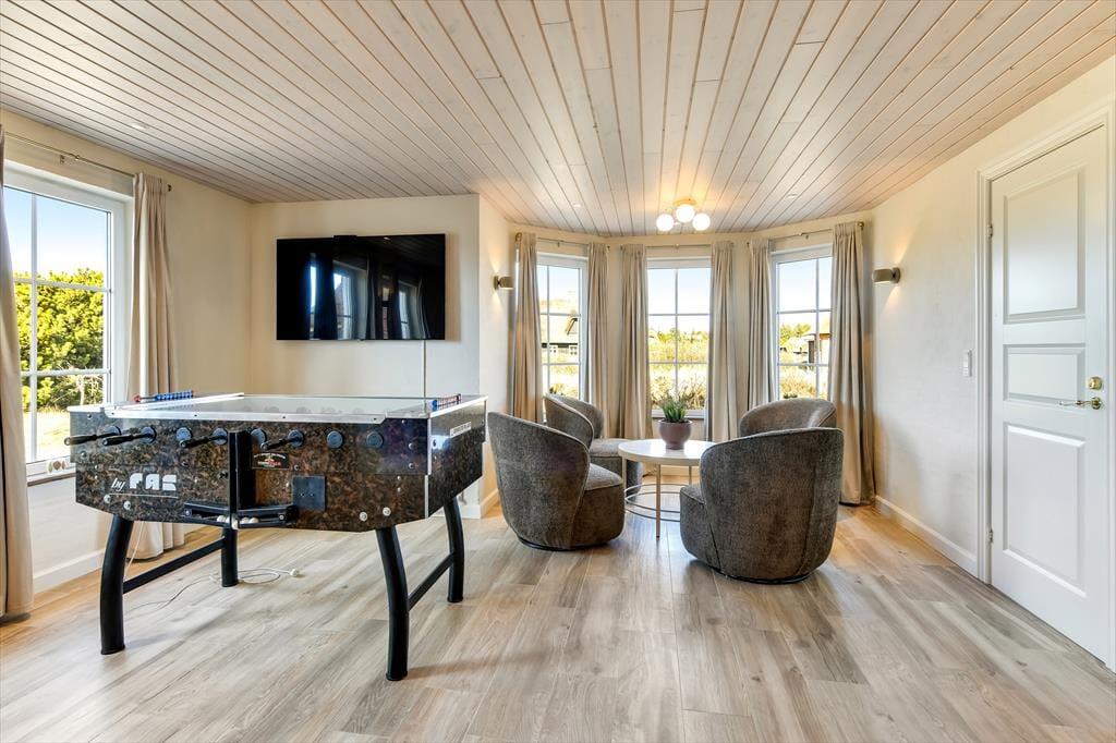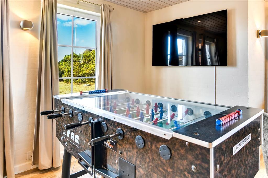 In dem geräumigen Ferienhaus ist reichlich Platz, um mit der ganzen Familie oder einer Gruppe von Freunden einen gemütlichen Urlaub zu verbringen. Die hellen und einladenden Wohnräume bieten den perfekten Rahmen für schöne Ferienmomente, in denen ihr das Beisammensein in komfortabler Atmosphäre genießen könnt. Von einem Wohnzimmer hast du Meerblick, vom anderen den Blick auf den Leuchtturm Blåvandshuk. Auch eines der Schlafzimmer bietet Meeresblick. Für Spiel und Spaß sorgt der Aktivitätsraum mit Billardtisch, Tischfußball, Darts und Airhockey – hier ist stundenlange Unterhaltung garantiert. Drei Badezimmer machen es leicht, morgens frisch in den Tag zu starten. Und nach einem erlebnisreichen Tag könnt ihr euch auf dem Sofa entspannen und den Abend gemeinsam ausklingen lassen.