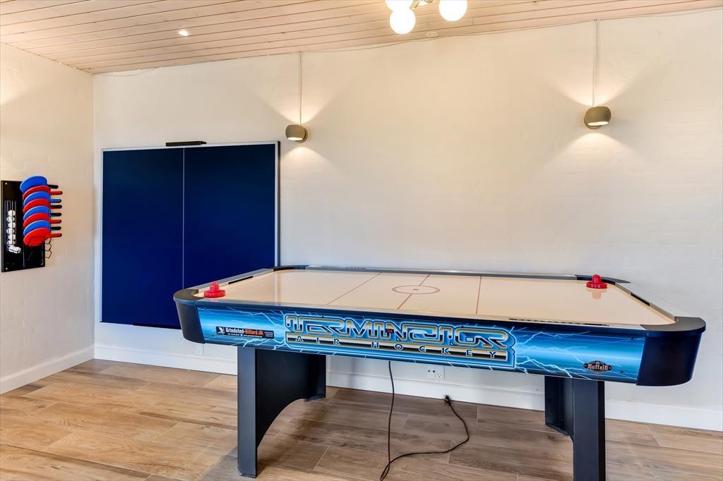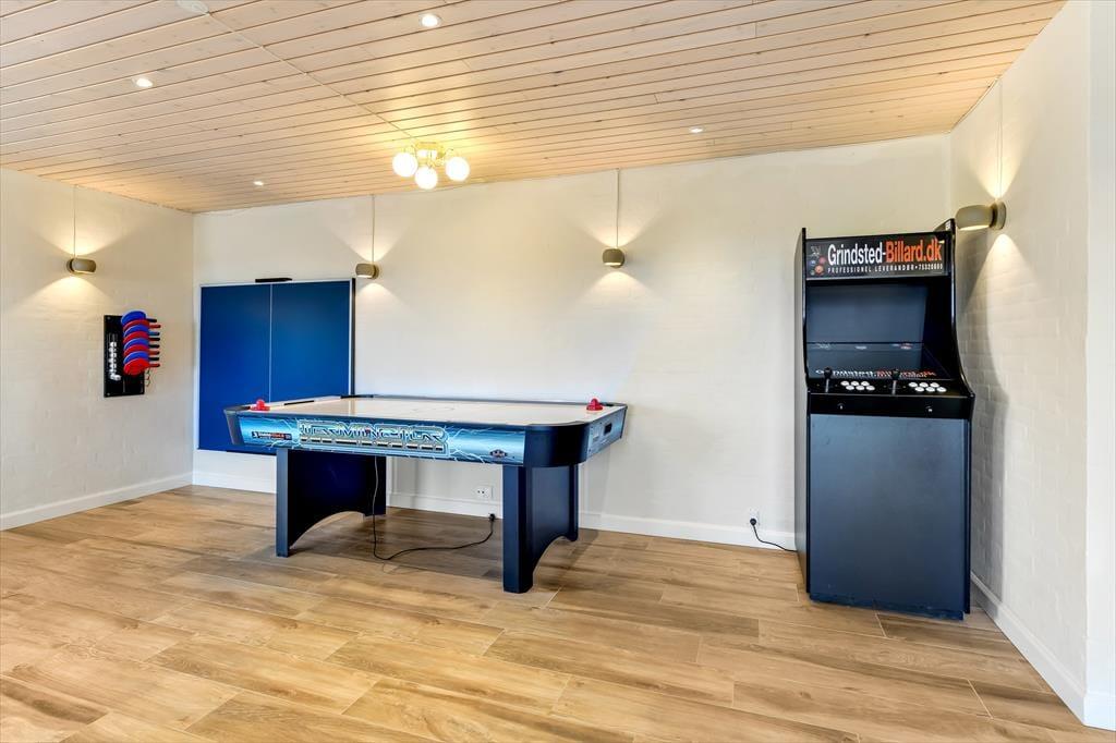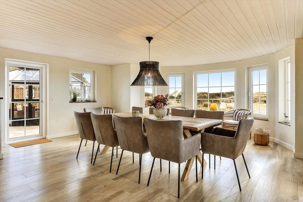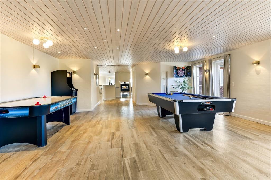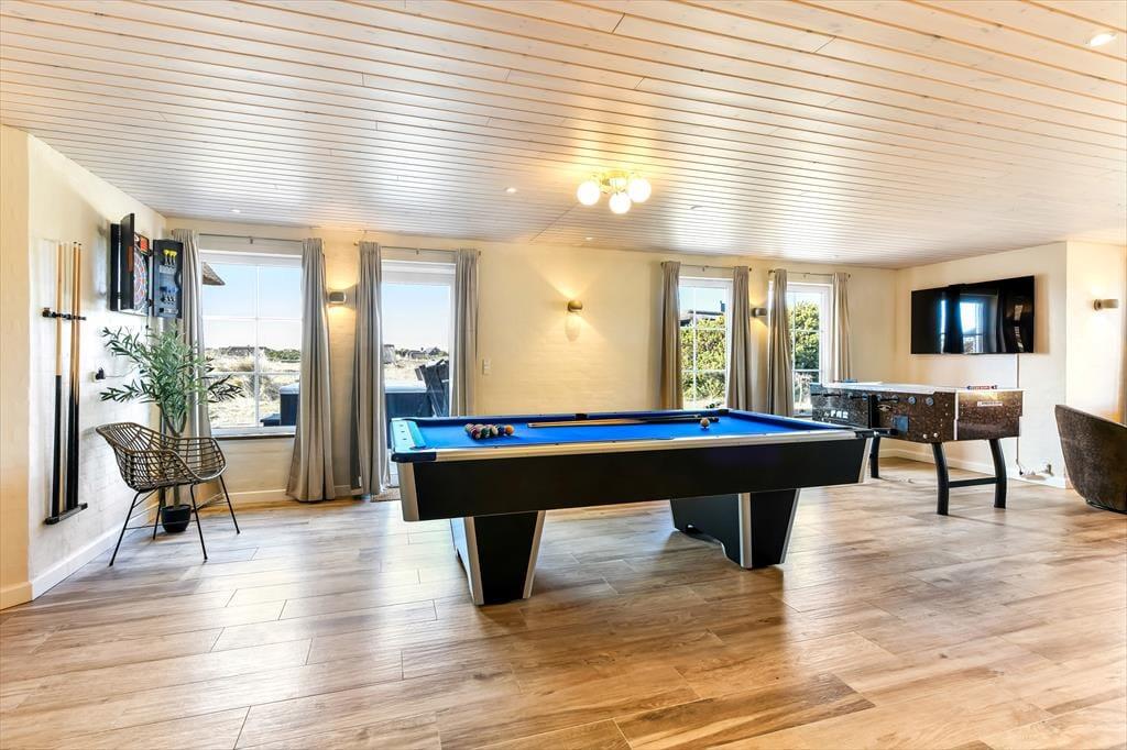 In dem geräumigen Ferienhaus ist reichlich Platz, um mit der ganzen Familie oder einer Gruppe von Freunden einen gemütlichen Urlaub zu verbringen. Die hellen und einladenden Wohnräume bieten den perfekten Rahmen für schöne Ferienmomente, in denen ihr das Beisammensein in komfortabler Atmosphäre genießen könnt. Von einem Wohnzimmer hast du Meerblick, vom anderen den Blick auf den Leuchtturm Blåvandshuk. Auch eines der Schlafzimmer bietet Meeresblick. Für Spiel und Spaß sorgt der Aktivitätsraum mit Billardtisch, Tischfußball, Darts und Airhockey – hier ist stundenlange Unterhaltung garantiert. Drei Badezimmer machen es leicht, morgens frisch in den Tag zu starten. Und nach einem erlebnisreichen Tag könnt ihr euch auf dem Sofa entspannen und den Abend gemeinsam ausklingen lassen.