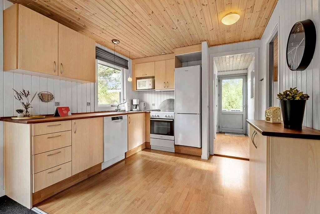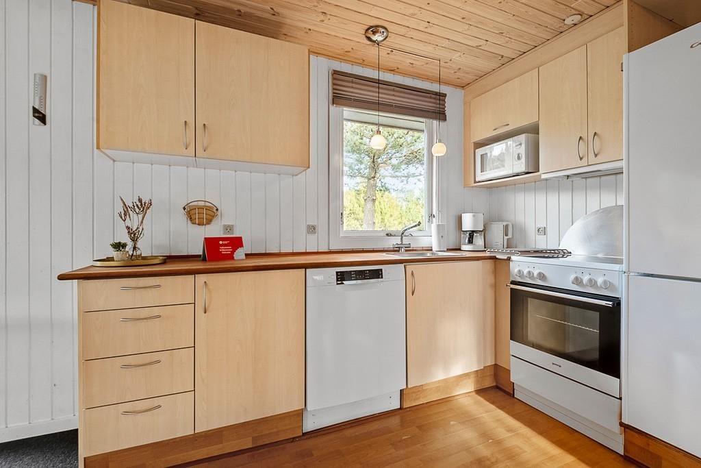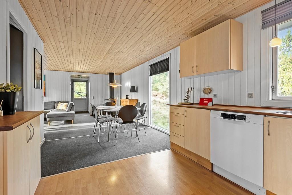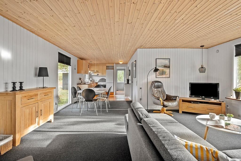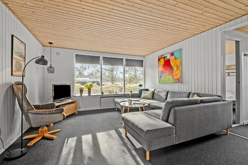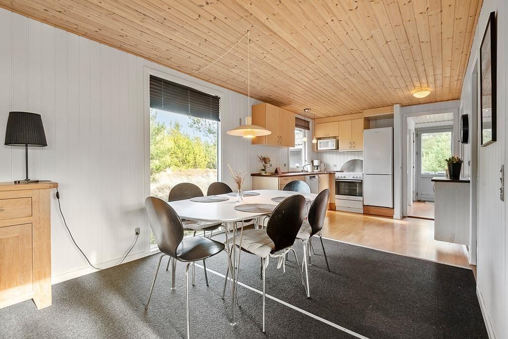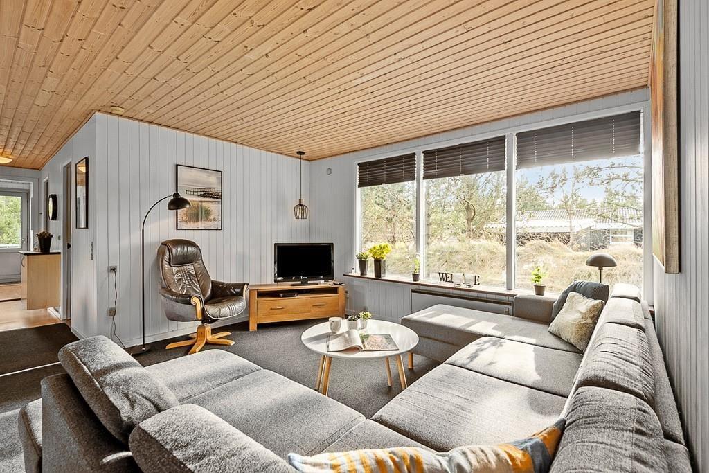 Drinnen erwartet dich ein gepflegtes und gemütliches Ferienhaus mit klassischer Ferienhausatmosphäre, die zu jeder Jahreszeit für einen angenehmen Aufenthalt sorgt. Das Wohnzimmer ist der natürliche Mittelpunkt des Hauses, und der Holzofen trägt an kühleren Abenden zu einer behaglichen Stimmung bei. Hier könnt ihr am Tisch Spiele spielen, einen Film auf dem Sofa schauen oder nach einem Tag in Blåvand einfach entspannen. Die drei Schlafzimmer bieten allen die Möglichkeit, sich zurückzuziehen und gut zu schlafen.
