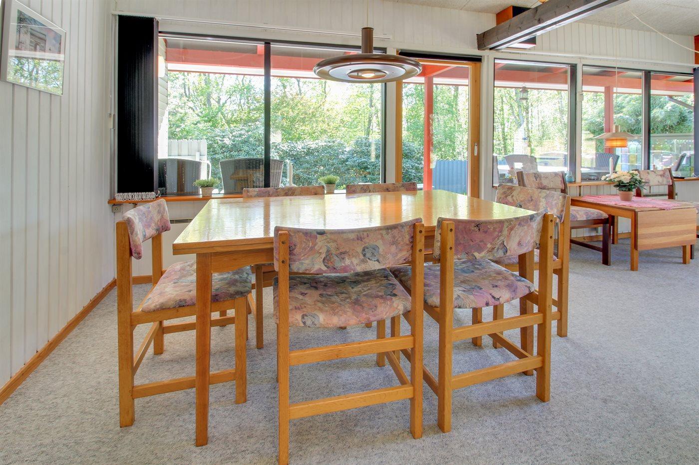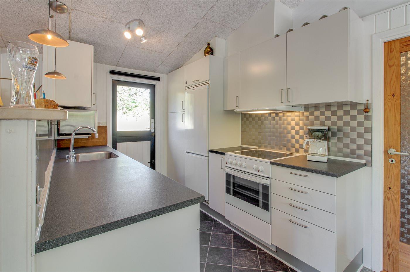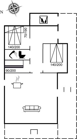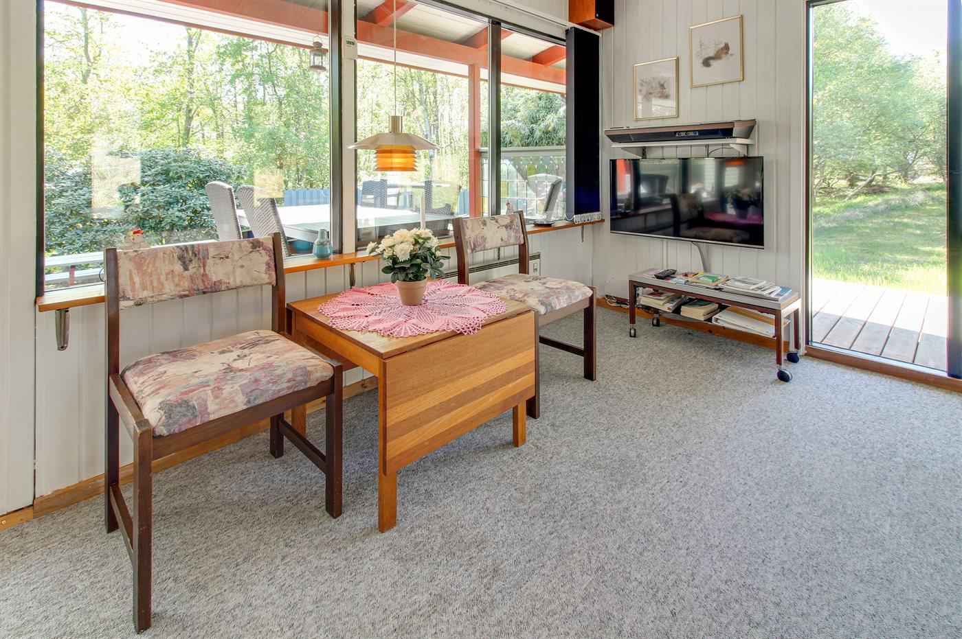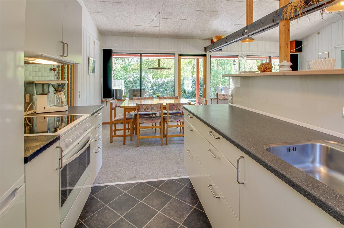 Gepflegtes Ferienhaus aus Holz, 1971 gebaut, auf einem hügeligen Naturgrundstück mit Kiefern und Heide gelegen. Offene und überdachte Terrasse mit Gartenmöbeln. Teppichböden. Die Wände und Decken sind mit Holz verkleidet. Sichtbare Deckenbalken. Badezimmer mit Dusche und Fliesenboden. Die Küche ist u. a. mit Mikrowelle ausgerüstet. Das Wohnzimmer enthält Kaminofen, Radio sowie TV digitalem Satellitenanschluss. Die Schlafplätze des Hauses verteilen sich auf 2 Zimmer mit Doppelbett und 1 mit 1 Einzelbett und 1 Etagenbett. Ein gemütliches Haus, wozu außerdem ein Carport gehört.
