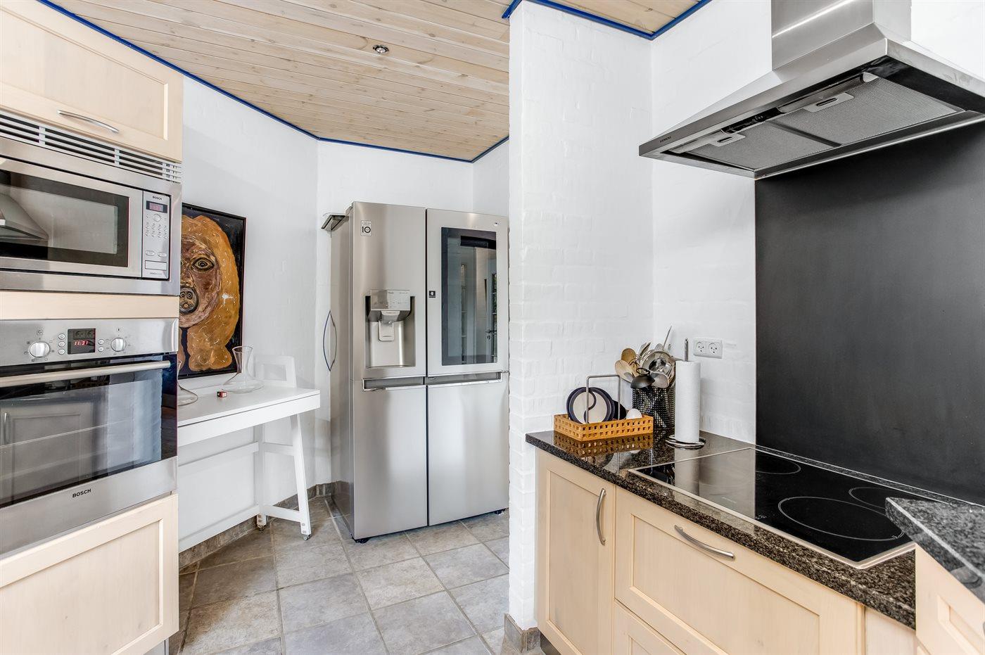 Die Küche ist mit Kühlschrank ausgestattet. Außerdem gibt es 4 Keramik-Kochfelder, Umluftofen, Mikrowelle sowie Geschirrspüler.