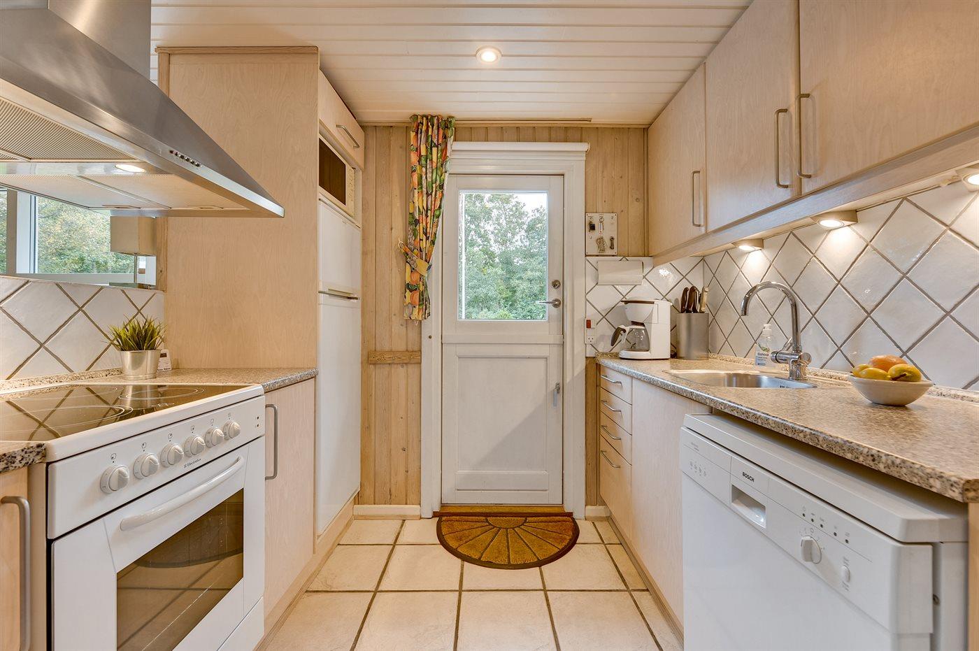 Die Küche ist mit Kühlschrank ausgestattet. Außerdem gibt es 4 Keramik-Kochfelder, Backofen, Mikrowelle sowie Geschirrspüler.