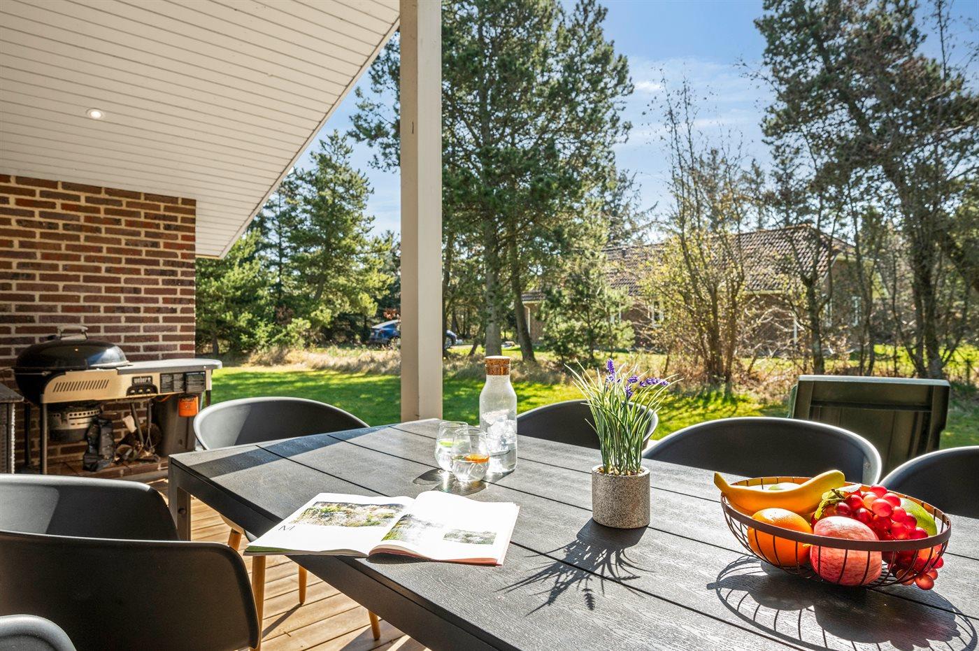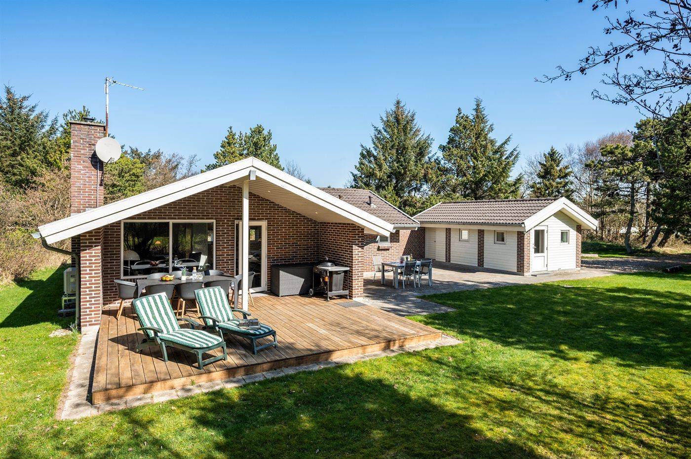 Dieses besonders schöne Ferienhaus, 2018 völlig renoviert, liegt am Ende einer Sackgasse - in Gehabstand zur Stadtmitte von Blåvand sowie zu dem kinderfreundlichen und autofreien Badestrand. Bei der Wahl der Materialien wurde besonders auf die Qualität großen Wert gelegt. Innen tritt das Haus wie neu hervor und draußen ist eine neue Terrasse (35 m2) aus Mahagoni angelegt, die im Anschluss an die überdachte Terrasse liegt. Das Ferienhaus liegt auf einem 1600 m² großen Naturgrundstück mit insgesamt 100 m² offener und 12 m² überdachter Terrasse. Es stehen Gartenmöbel, Grill und Geräteraum zur Verfügung. Es ist ein Ladestecker für Elektroautos installiert (Typ ABB) mit einer Ladeleistung von 11 kW.