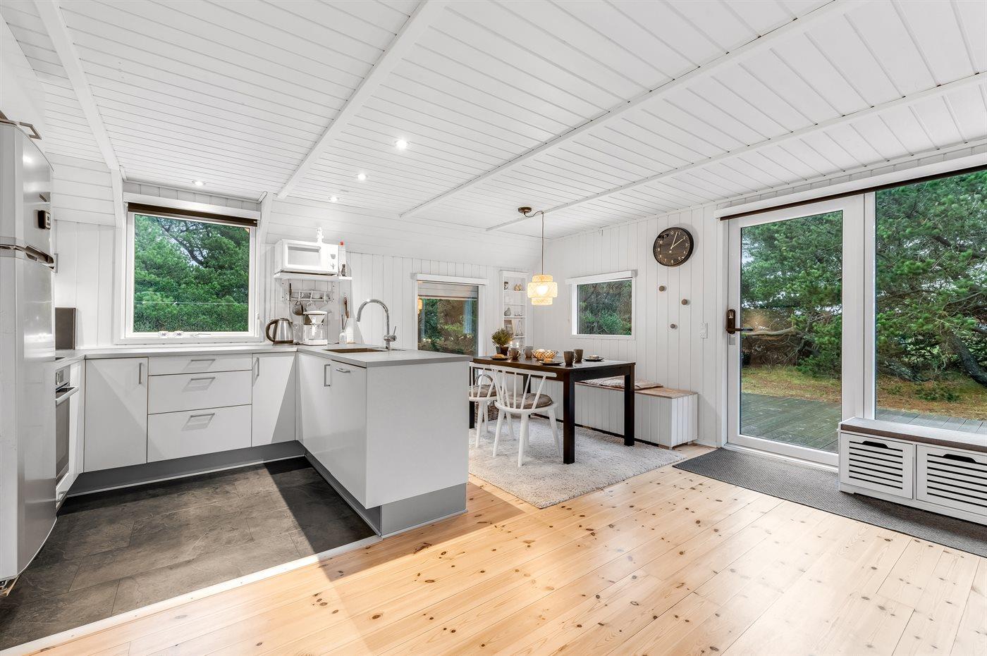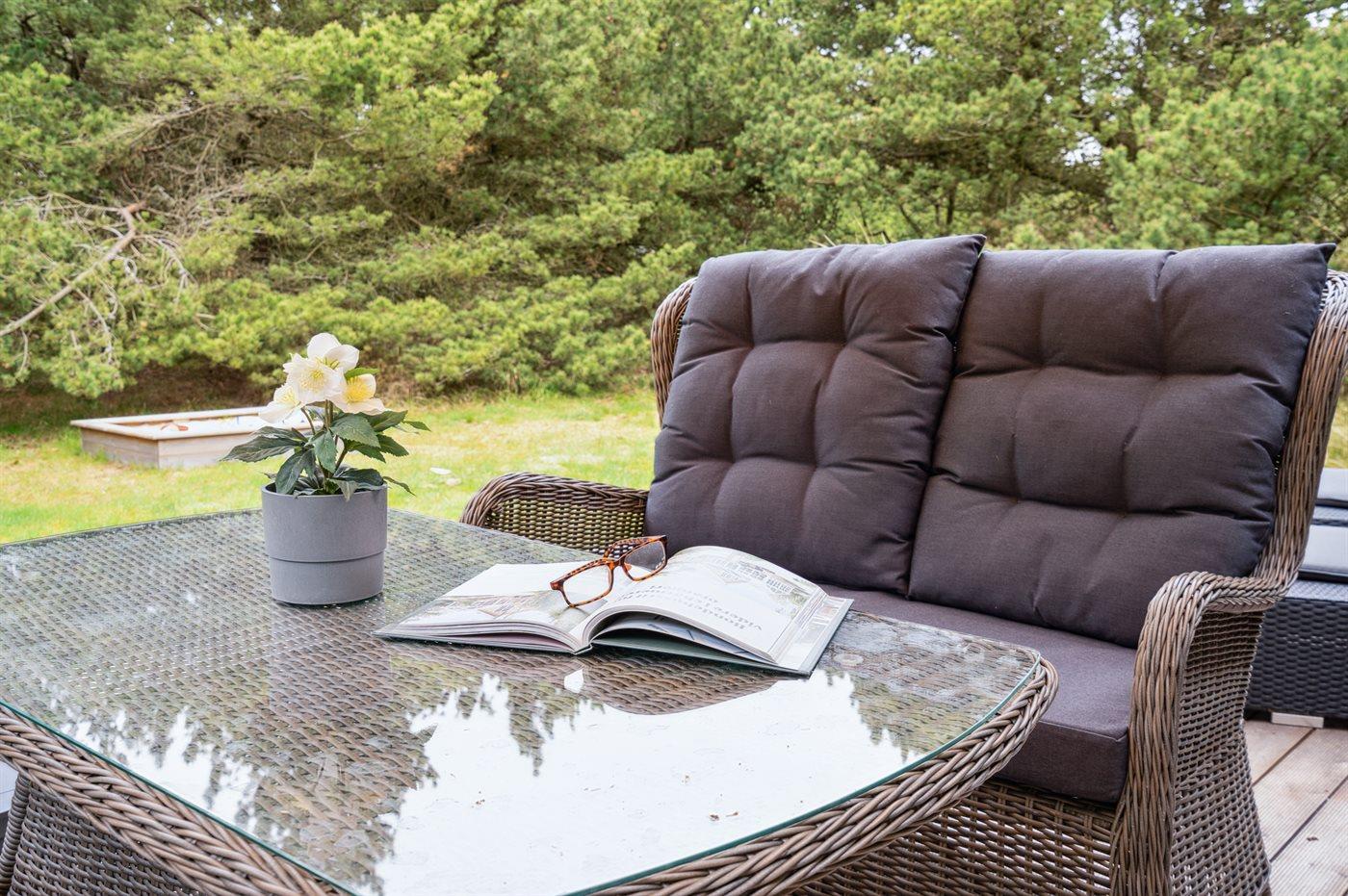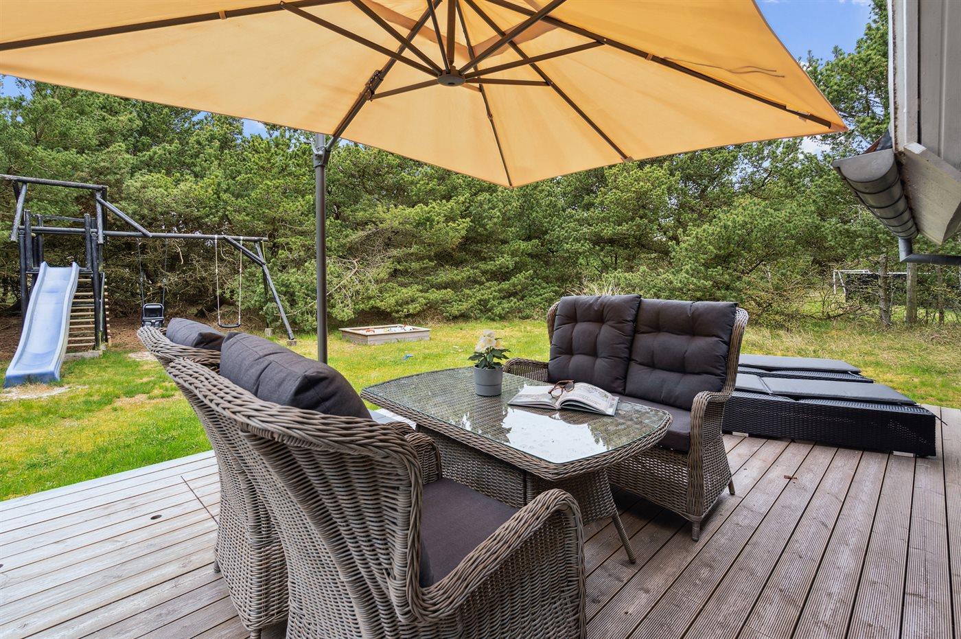 Dieses schöne Ferienhaus liegt auf einem großen Naturgrundstück mit Kiefern. Auf dem vor dem Wind geschützten Grundstück kann man sich ungestört aufhalten.