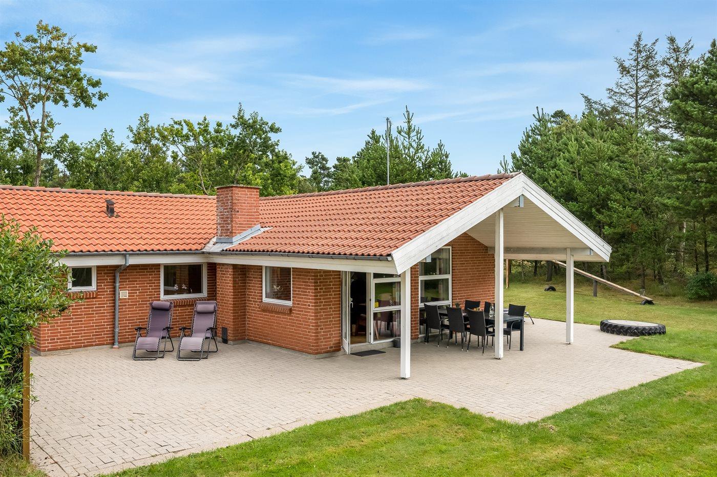 Dieses schöne Ferienhaus liegt auf einem Gartengrundstück mit einem großen Rasen, wo die Kinder spielen können. Zum Haus gehört sowohl offenes als überdachtes Terrassenareal.