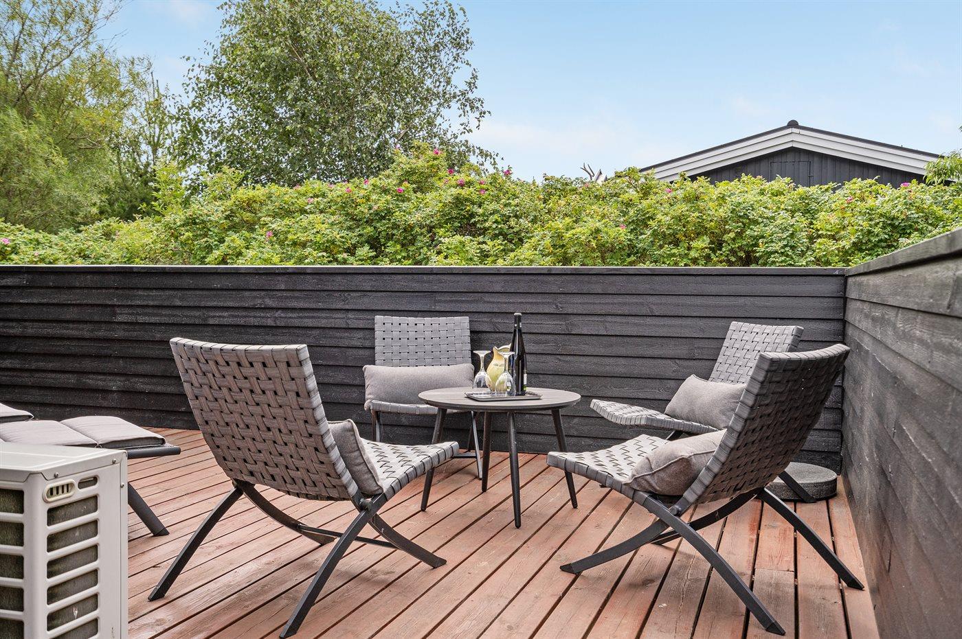 Dieses schöne und hell eingerichtete Ferienhaus liegt auf einem Grundstück mit Platz für Ballspiele und andere Aktivitäten im Freien – in ruhiger Umgebung am Ende einer Sackgasse. Zum Haus gehören gute und zum Teil abgeschirmte Terrassen mit Gartenmöbeln.