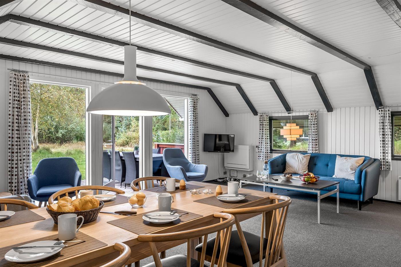 Das Ferienhaus ist im skandinavischen Stil eingerichtet, gemütlich und mit netten Möbeln.