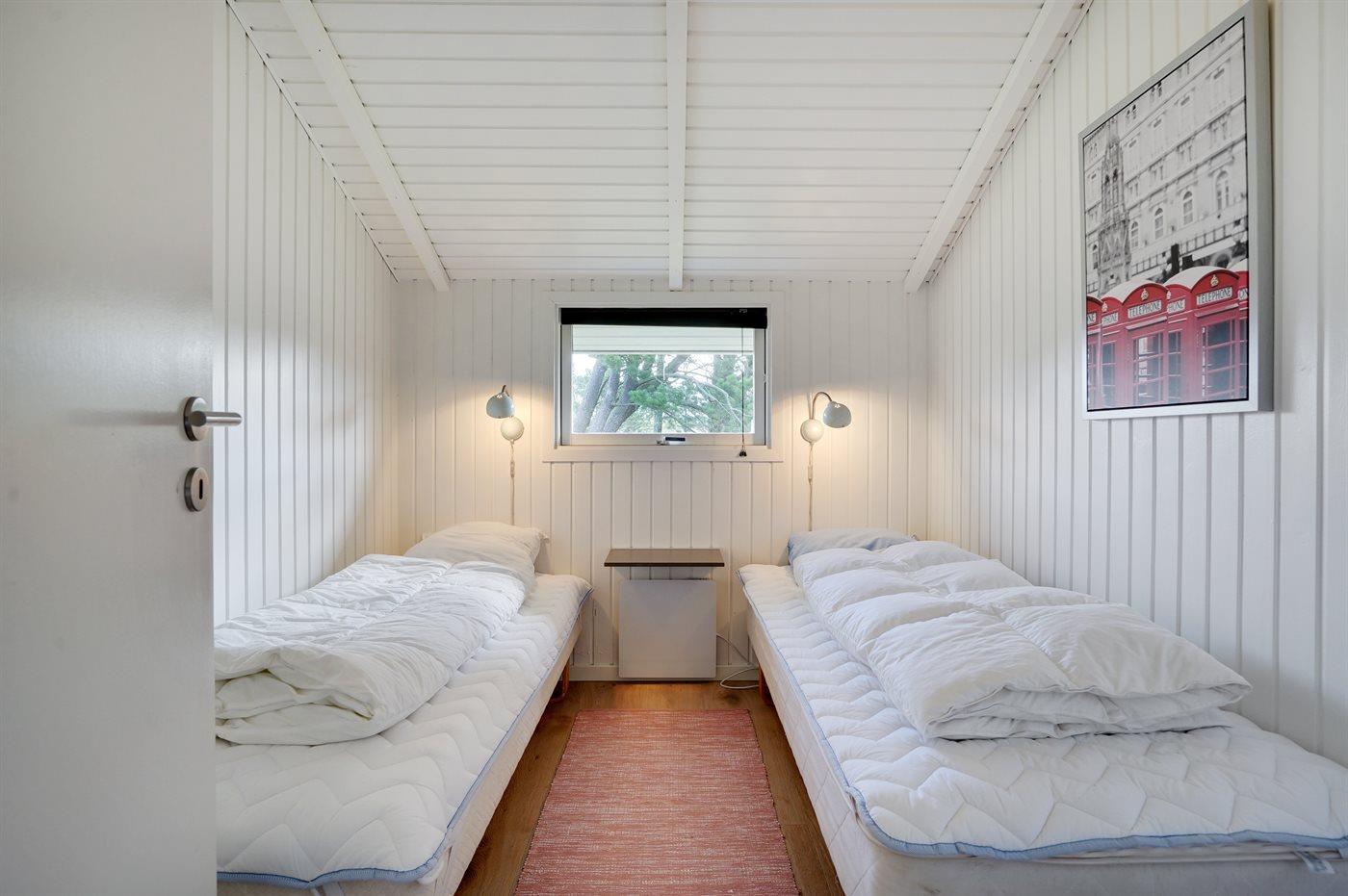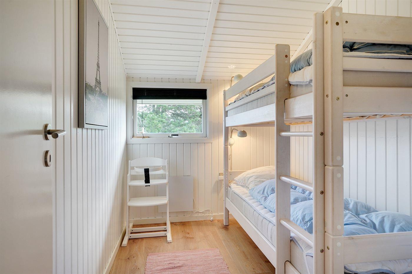 Die Schlafplätze verteilen sich auf 3 Schlafräume. 2 Schlafplätze in einem Doppelbett. 2 Schlafplätze in Einzelbetten. 2 Schlafplätze in einem Etagenbett. Ferner steht ein Kinderbett zur Verfügung.