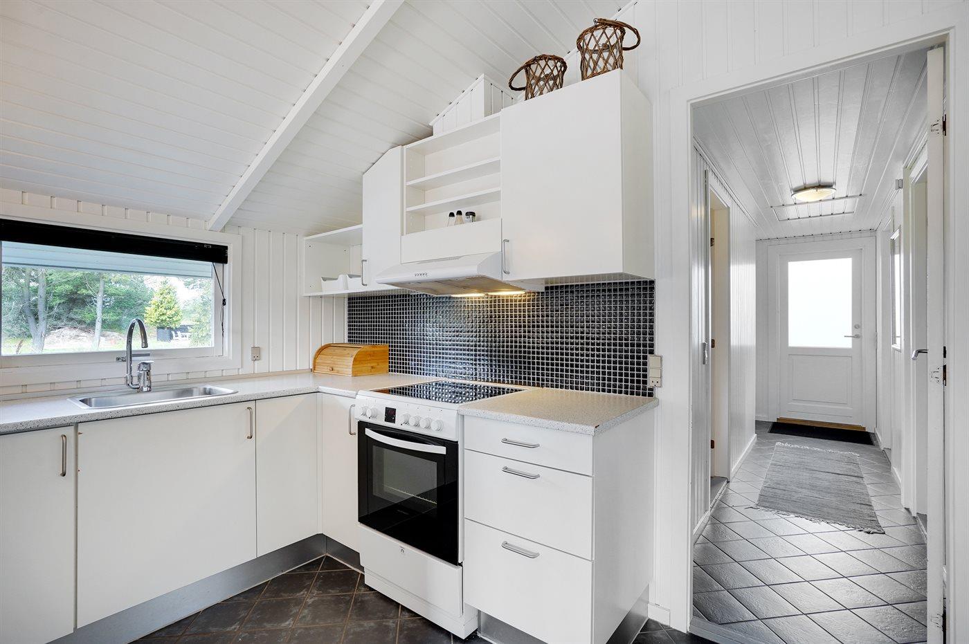Die Küche ist mit Kühlschrank ausgestattet. Außerdem gibt es 4 Keramik-Kochfelder, Umluftofen sowie Geschirrspüler.