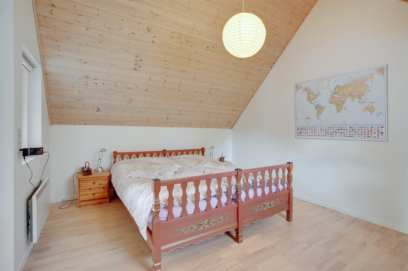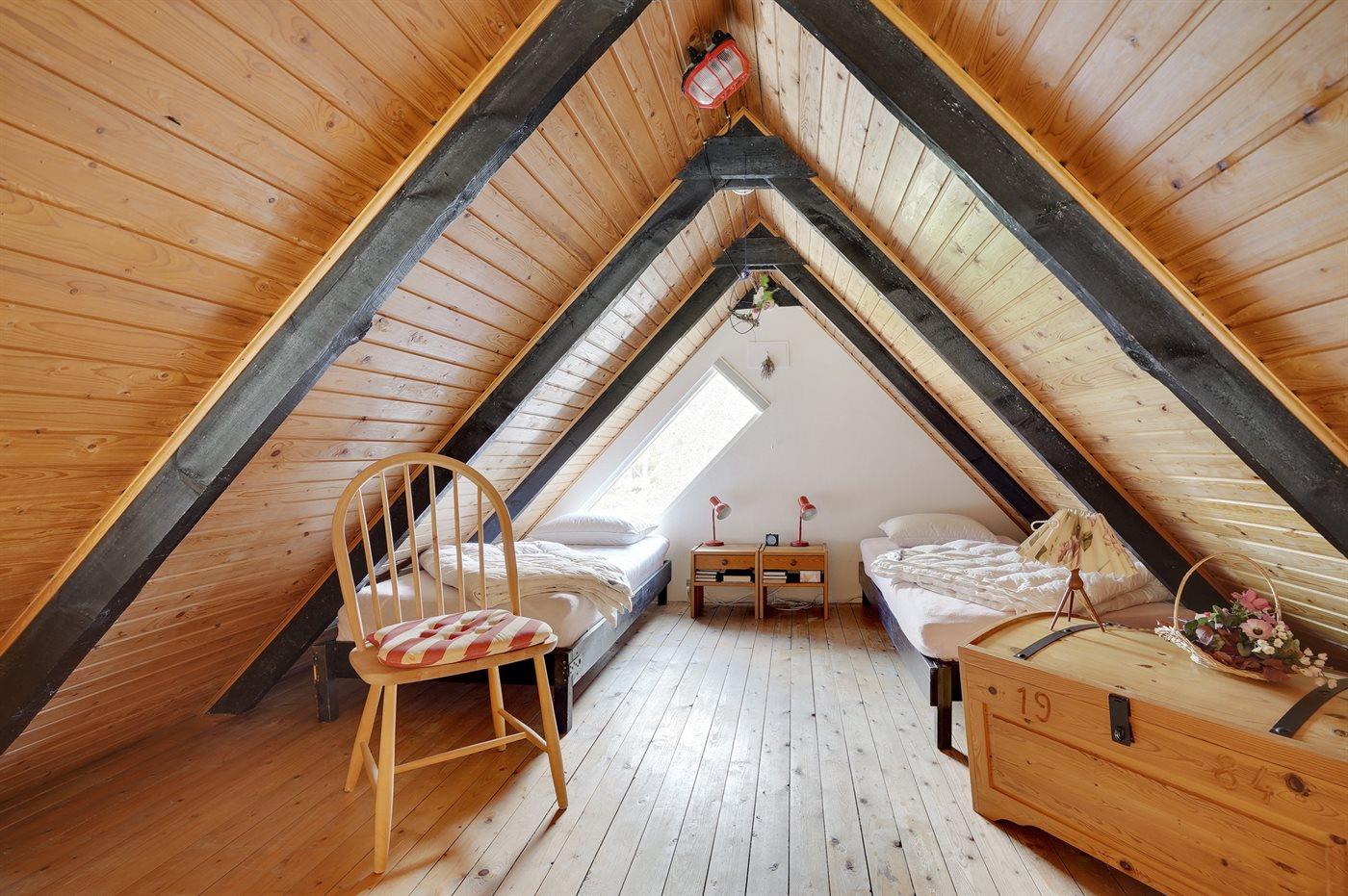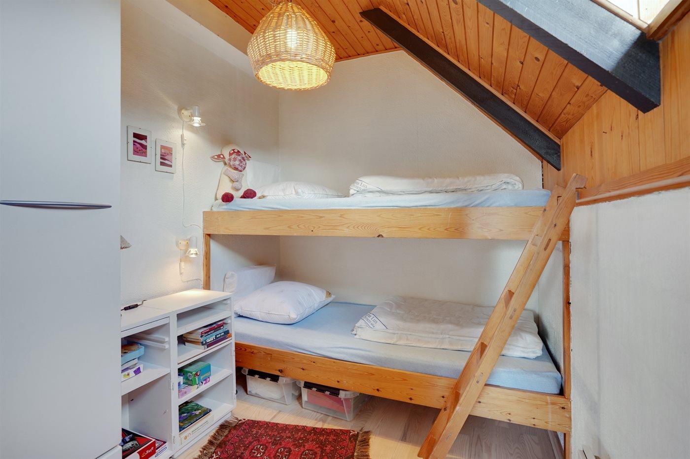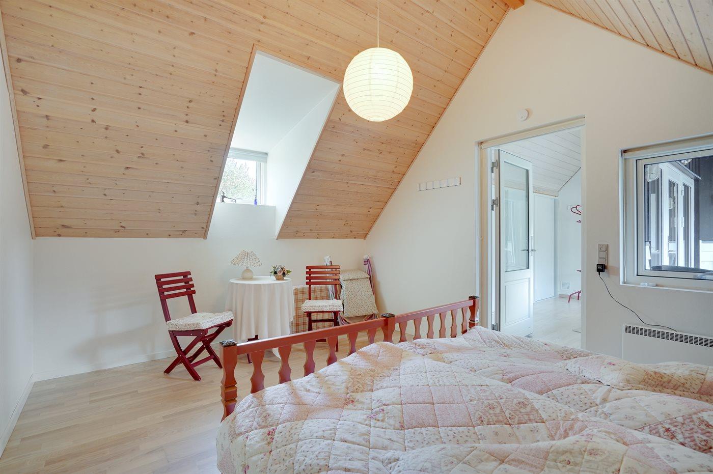 Die Schlafplätze verteilen sich auf 2 Schlafräume. 2 Schlafplätze in einem Doppelbett. 2 Schlafplätze in Einzelbetten. 2 Schlafplätze in einem Etagenbett. 2 von diesen Schlafplätzen befinden sich im offenen Obergeschoss. Ferner steht ein Kinderbett zur Verfügung.