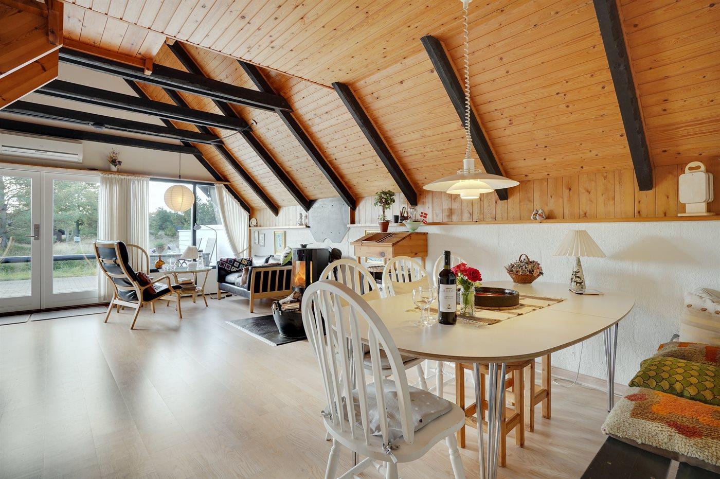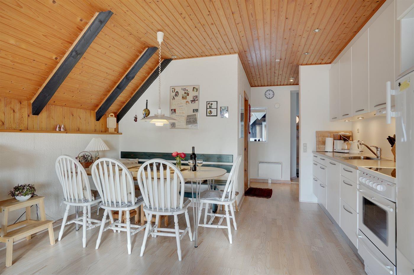 Das Ferienhaus eignet sich für 4 Personen sowie 1 Kleinkind bis zu 3 Jahren. Die Ferienunterkunft hat eine Wohnfläche von 130 m², ist 2-stöckig, und wurde 1972 gebaut. 2012 wurde die Ferienunterkunft renoviert. Haustiere dürfen nicht mitgebracht werden. Die Ferienunterkunft ist mit energiesparender Wärmepumpe ausgestattet. Die Ferienunterkunft ist mit Waschmaschine ausgestattet. Tiefkühlmöglichkeit mit 80 Liter Nutzinhalt. Es gibt außerdem einen Kaminofen. Für die jüngsten Feriengäste ist 1 Kinderhochstuhl vorhanden.