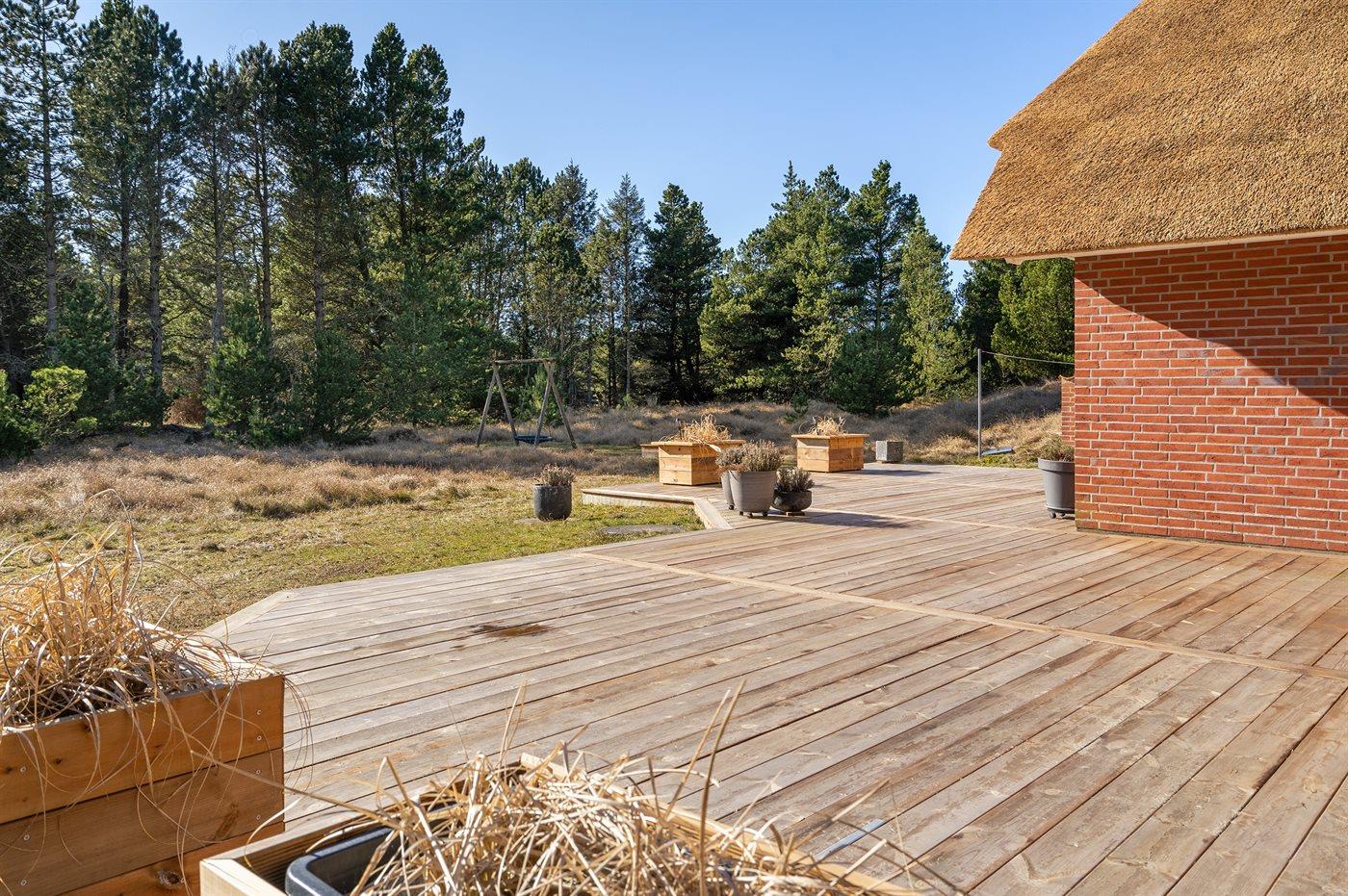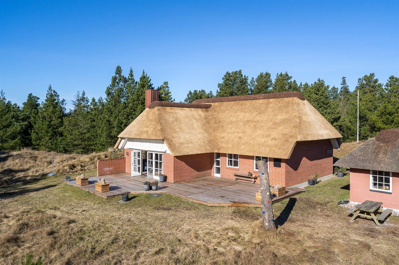 Modernes Familienferienhaus in ruhiger Natur nahe Blåvand, mit Kamin, großer Terrasse und Hobbyraum für entspannte Tage.